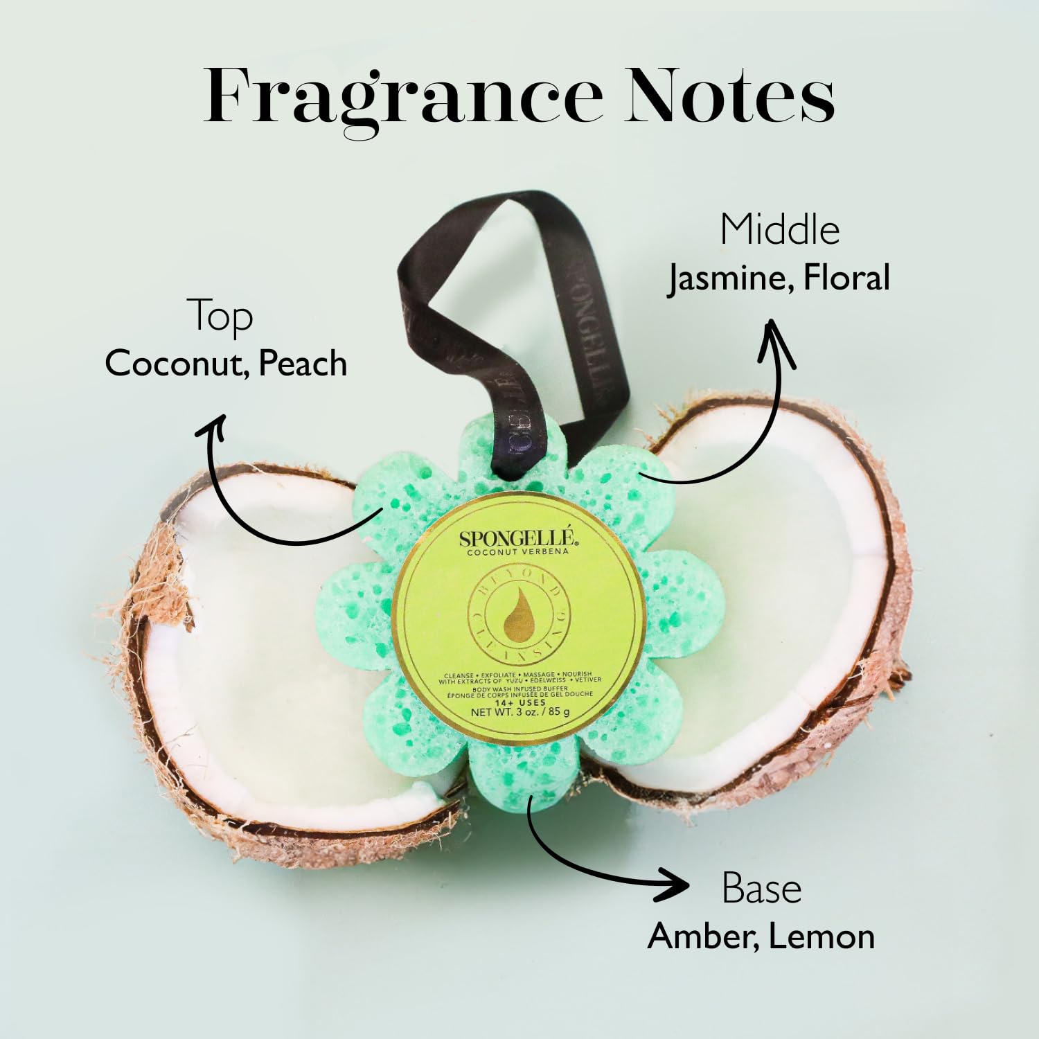 Spongelle Coconut Verbena Wild Flower Buffer Body Scrubber | Bath & Shower Loofah for Women | Exfoliator with Body Wash Infused Sponge | 14+ uses