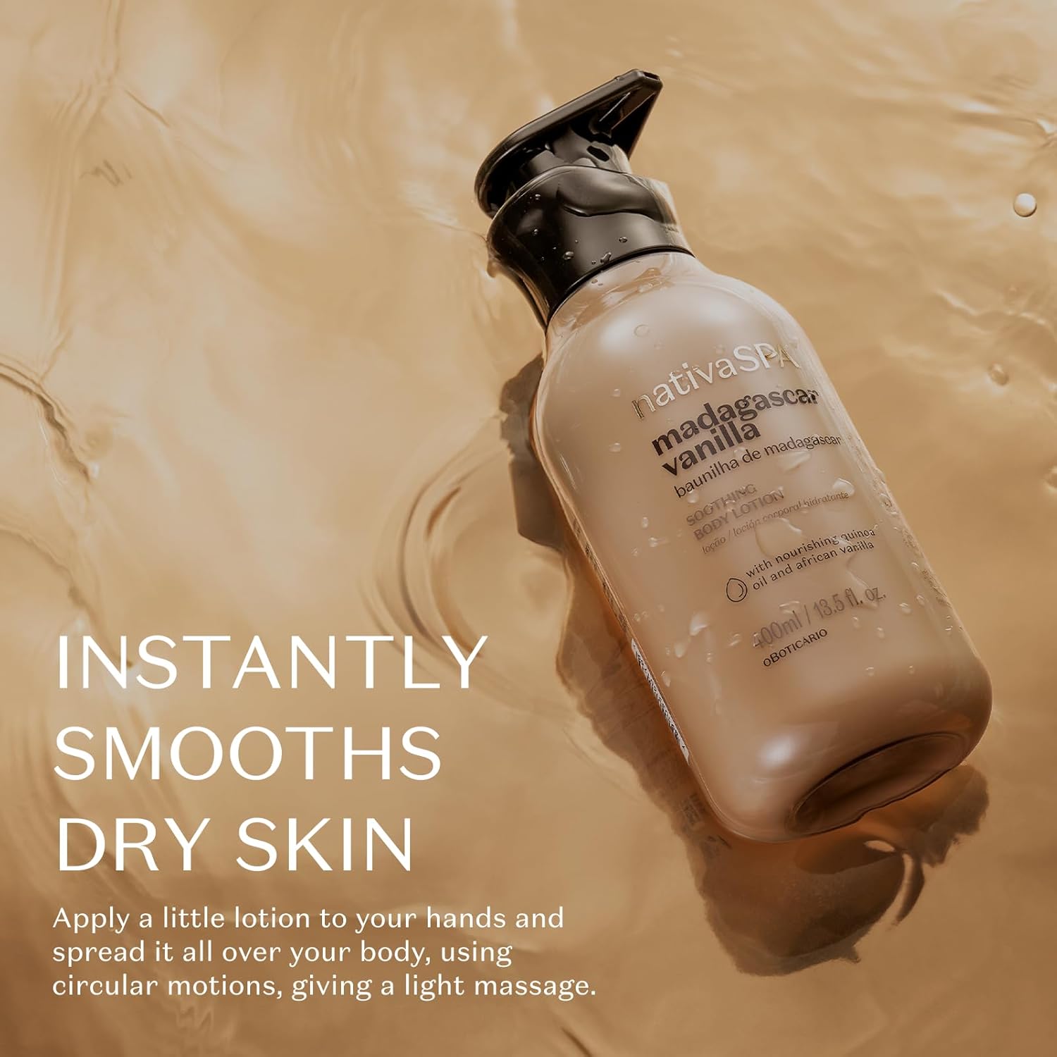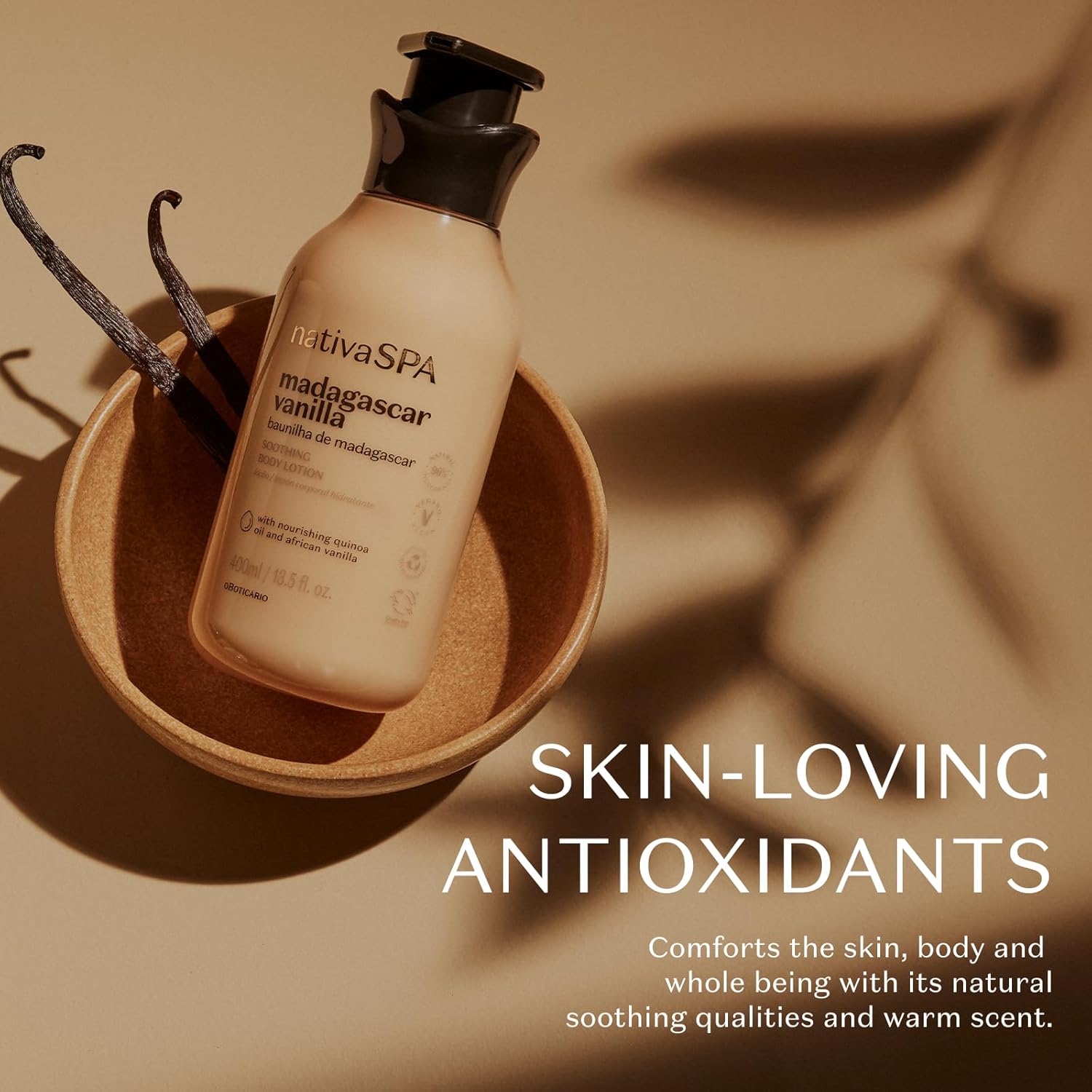 Nativa SPA by O Boticário, Madagascar Vanilla Moisturizing Body Lotion, Fragranced Skin Moisturizer with Purified Quinoa Drops, 13.5 Ounce