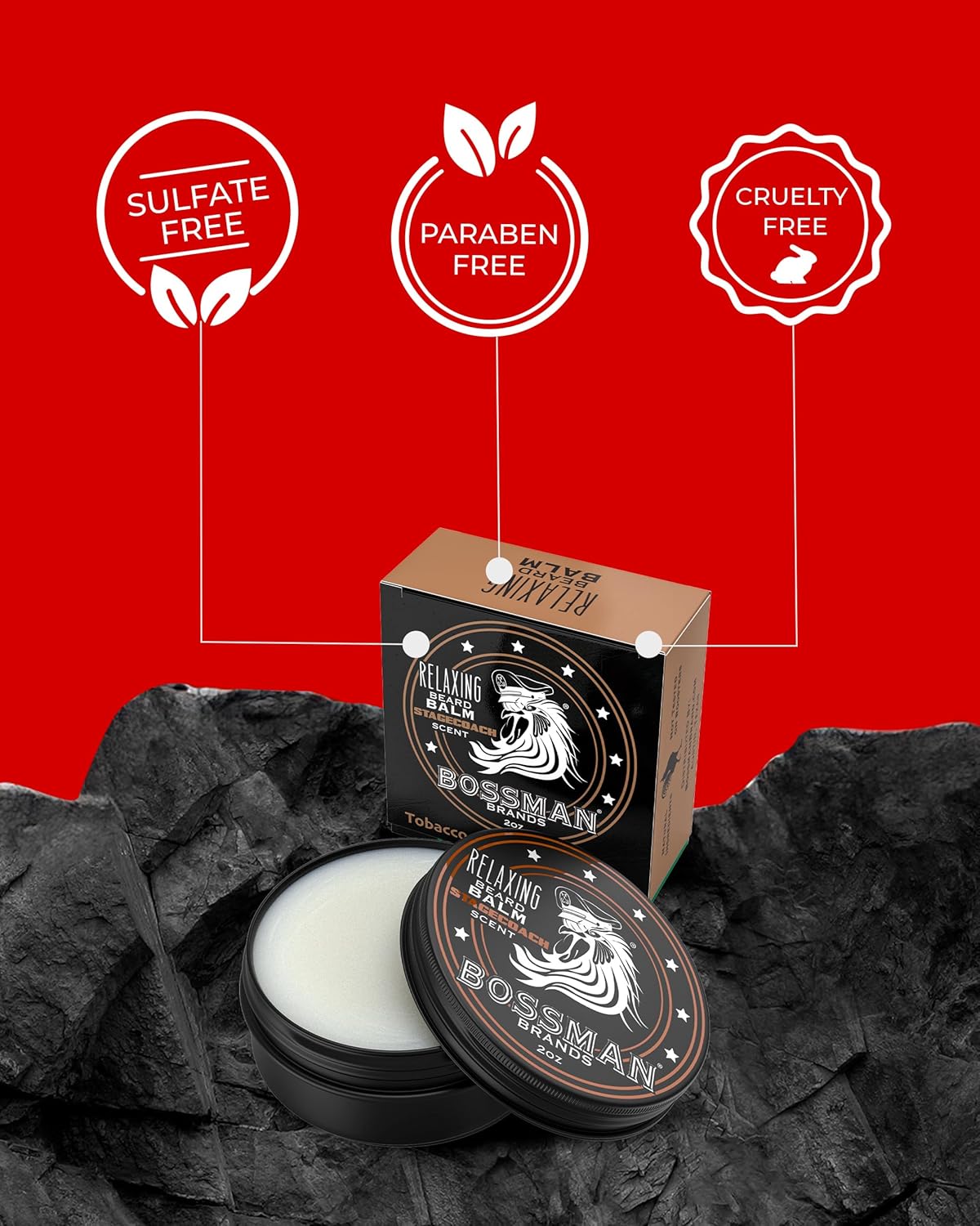 - Beard Balm to Nourish, Thicken, Strengthen Hair: You'll be the guy with the thickest beard in town with our Bossman Relaxing Beard Balm. It features a host of natural ingredients such as Mango and Shea Butter that hydrate and retain moisture in the hair follicles and pores to keep your beard healthy and help it grow thicker and fuller