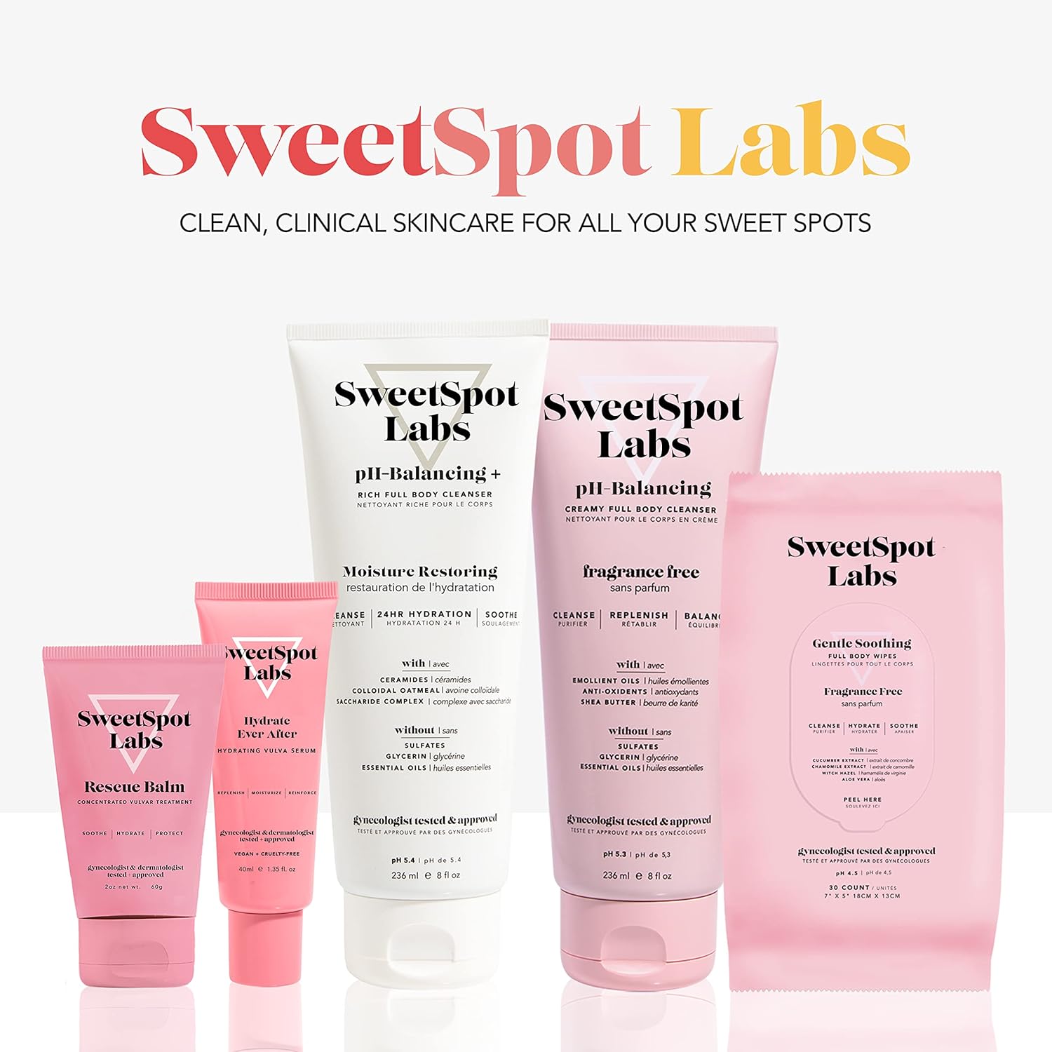 - GYNECOLOGIST APPROVED. SweetSpot Labs formulas are clinically-tested on sweet spots by unbiased gyns & derms and proven to be both non-irritating + effective. Our pH-balanced body wash is free from common irritants, allergens, comedogenics, and hormone disruptors.