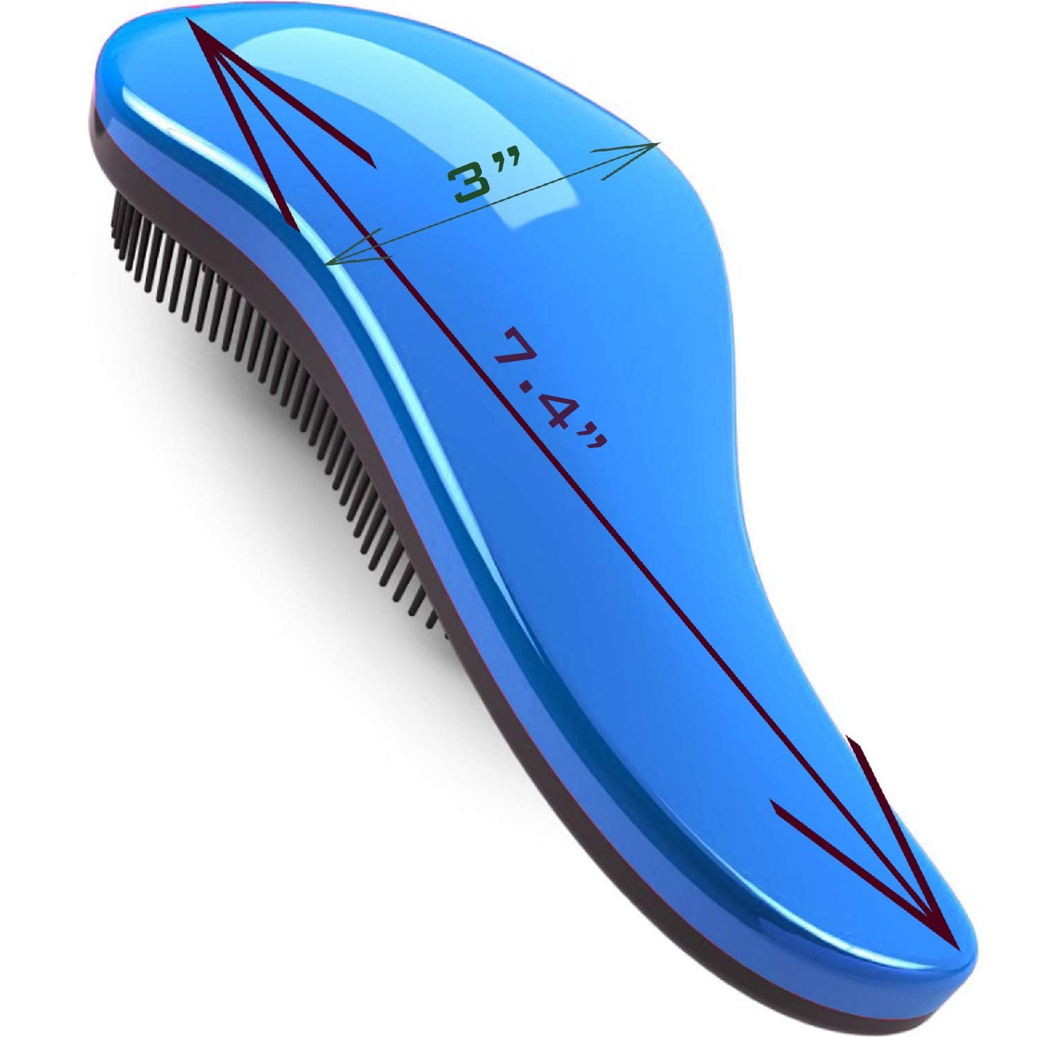- Knot free tangle free detagnling hair brush for kids and women curly long hair. 3pcs pack contain 3colors black, pink and blue perfect for girls and boyes and all family members. Size of 7.4 inch detangling hair brushes is great for kids and adult . 3pcs detangling brush are lightweight, soft and comfortable feel.