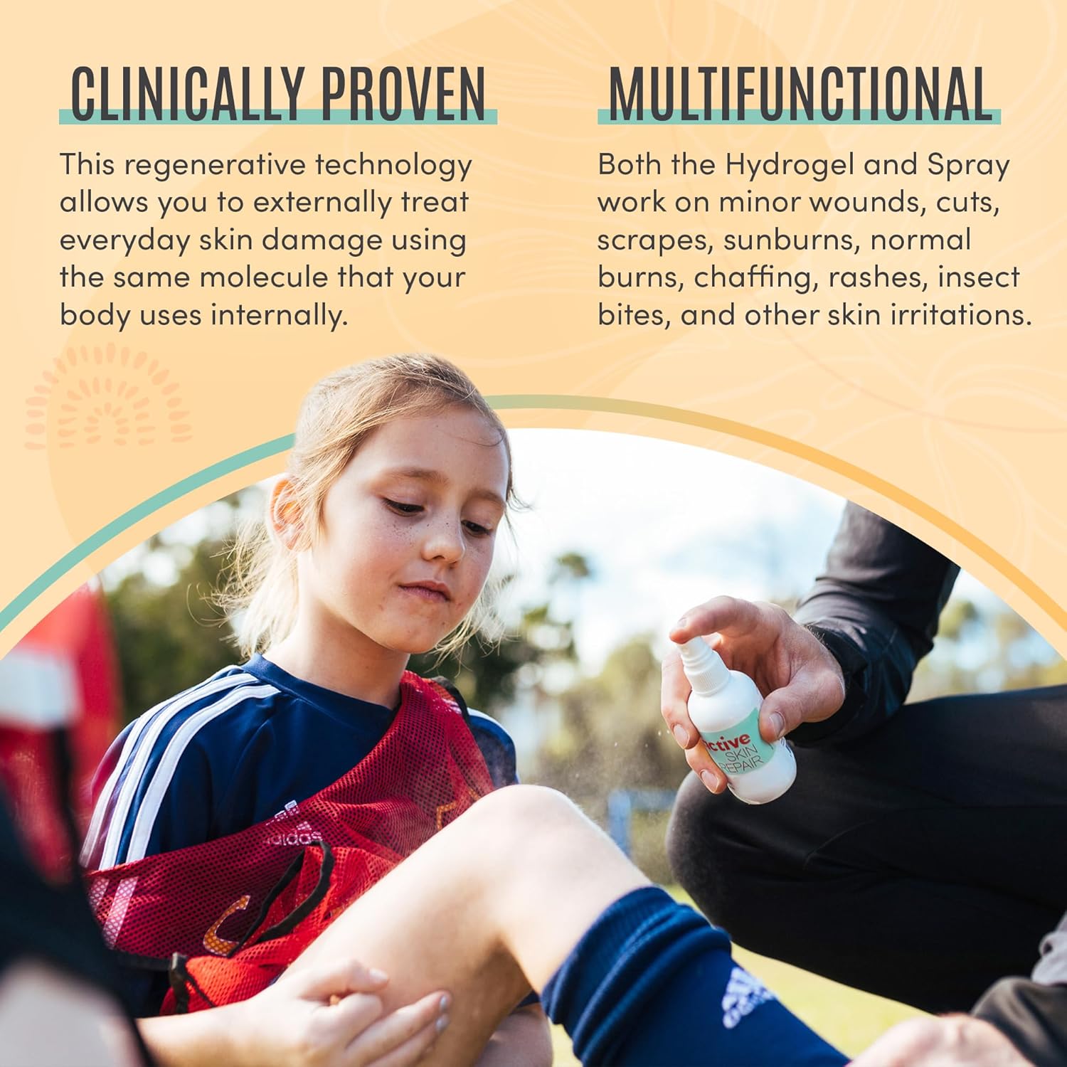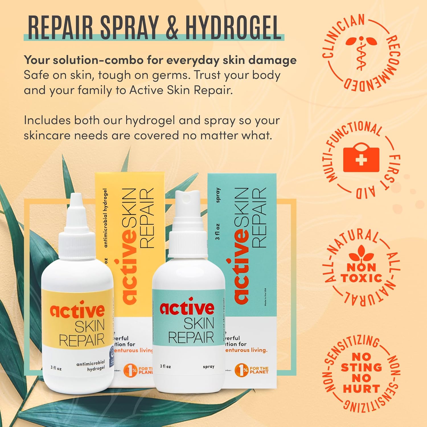 - DAILY SOLUTION FOR SKIN CARE: ACTIVE Skin Repair helps humans recover by working on cuts, rashes, sunburns, and other skin irritations. The power of an first aid kit in hydrogel and spray form