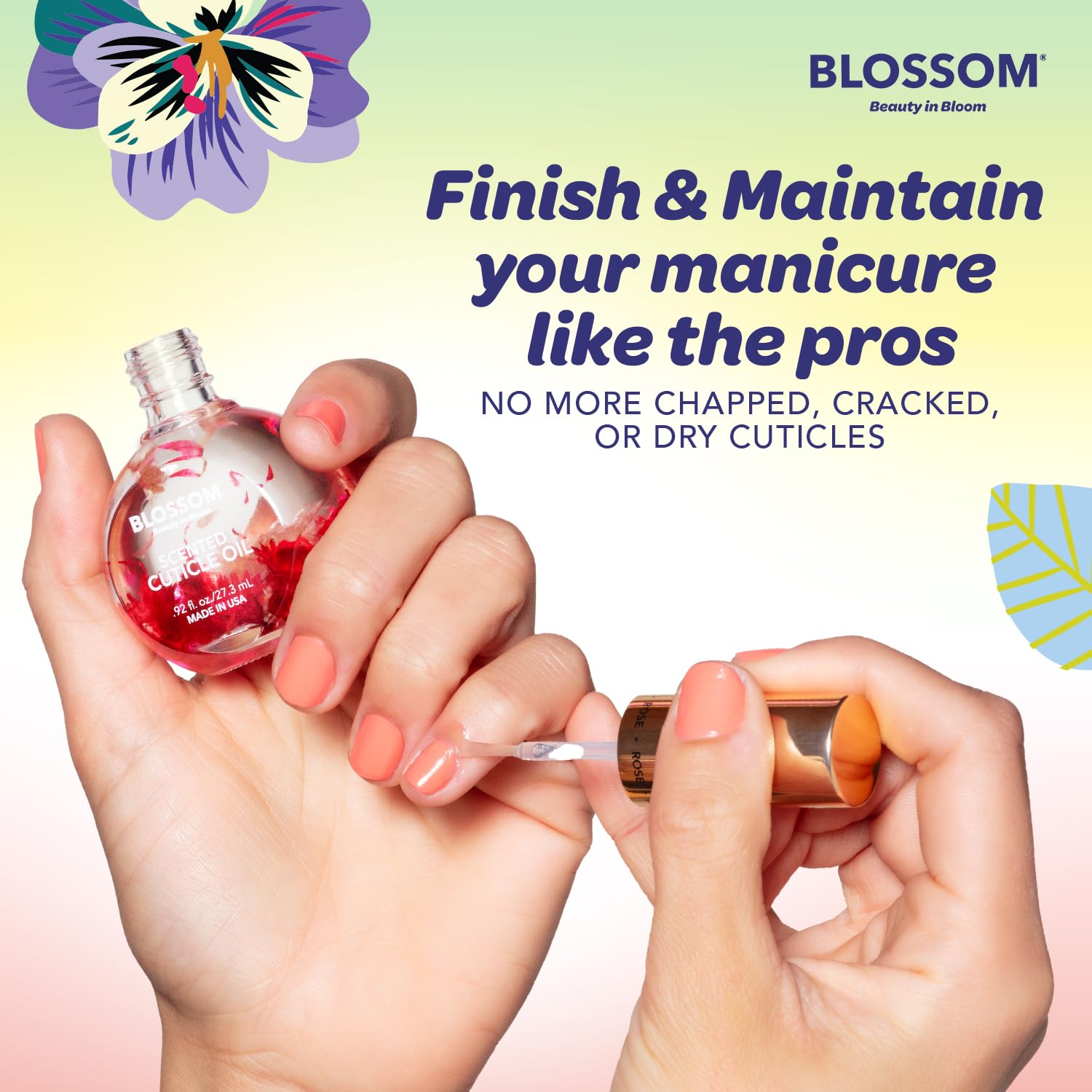 - CUTICLE OIL WITH FLOWERS: Blossom honors the timeless beauty of flowers by incorporating REAL FLOWERS into each product, making every day prettier! Filled with dried, natural flowers, our carefully crafted products deliver an element of fun and individuality for every person, every day, every journey