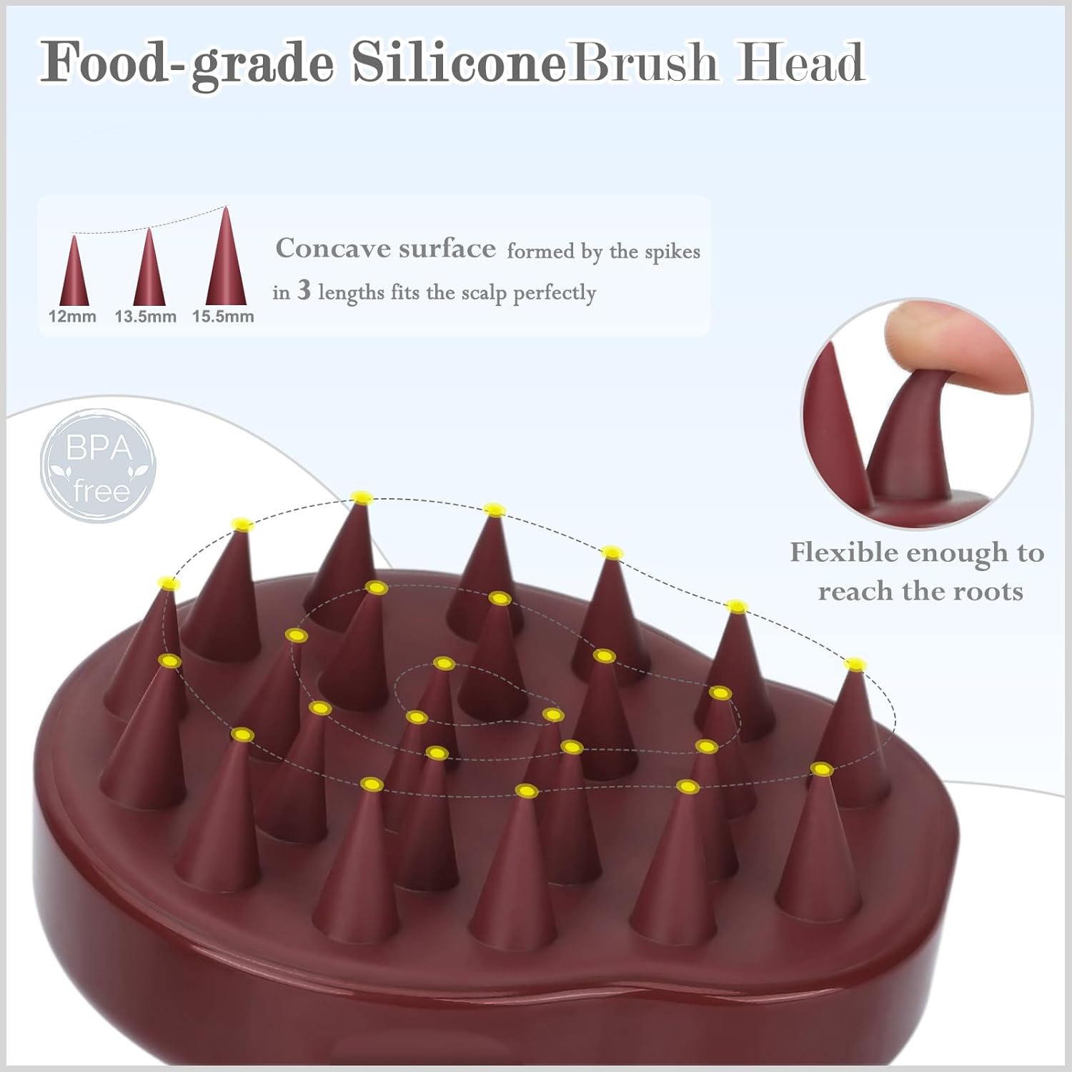 - 【100% Food-grade Silicone Teeth】 Really hygienic and safe. Gentle spikes effectively scrub the scalp without scratching, which are flexible enough to move through the hair without tangling or pulling. Tourmaline contained activates cells and increases blood flow.