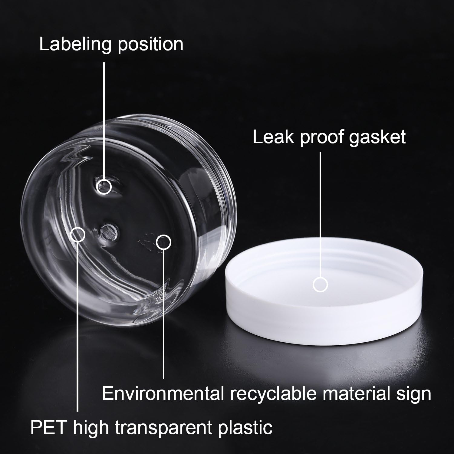 - Reliable quality: these round containers adopt good quality PET plastic, not easy to be broken; These straight-sided and wide-mouth jars allow for easy filling and removing