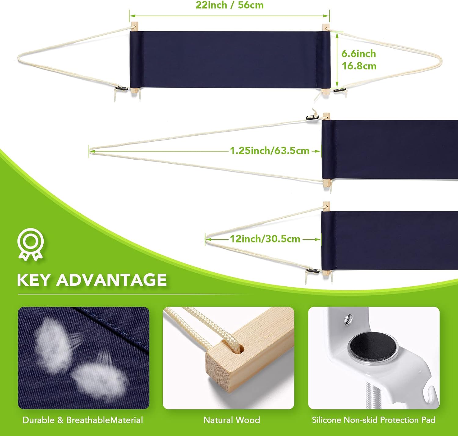 - Premium Quality: The Footrest under Desk Hammock is made by 100% premium quality cotton fabric, breathable, soft, non-abrasive, brings your feet soft and cool feeling without worrying about sweating or other discomfort. The package include 1 durable canvas + 2 steel clips + hanging polyethylene rope + wood. Item Size: 22"x 6.6"inches