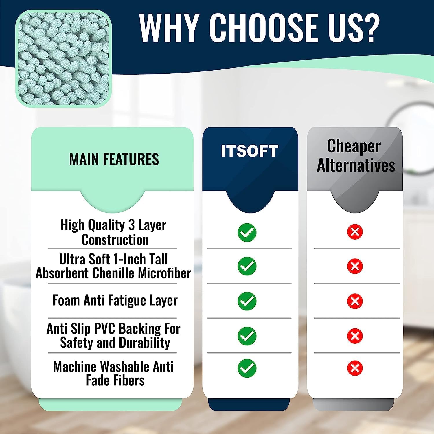- Thick chenille microfiber bathroom rug absorbs water fast to keep floors dry. Perfect small bath rug for shower sides, vanity areas, and puddle-prone spots in the bathroom.