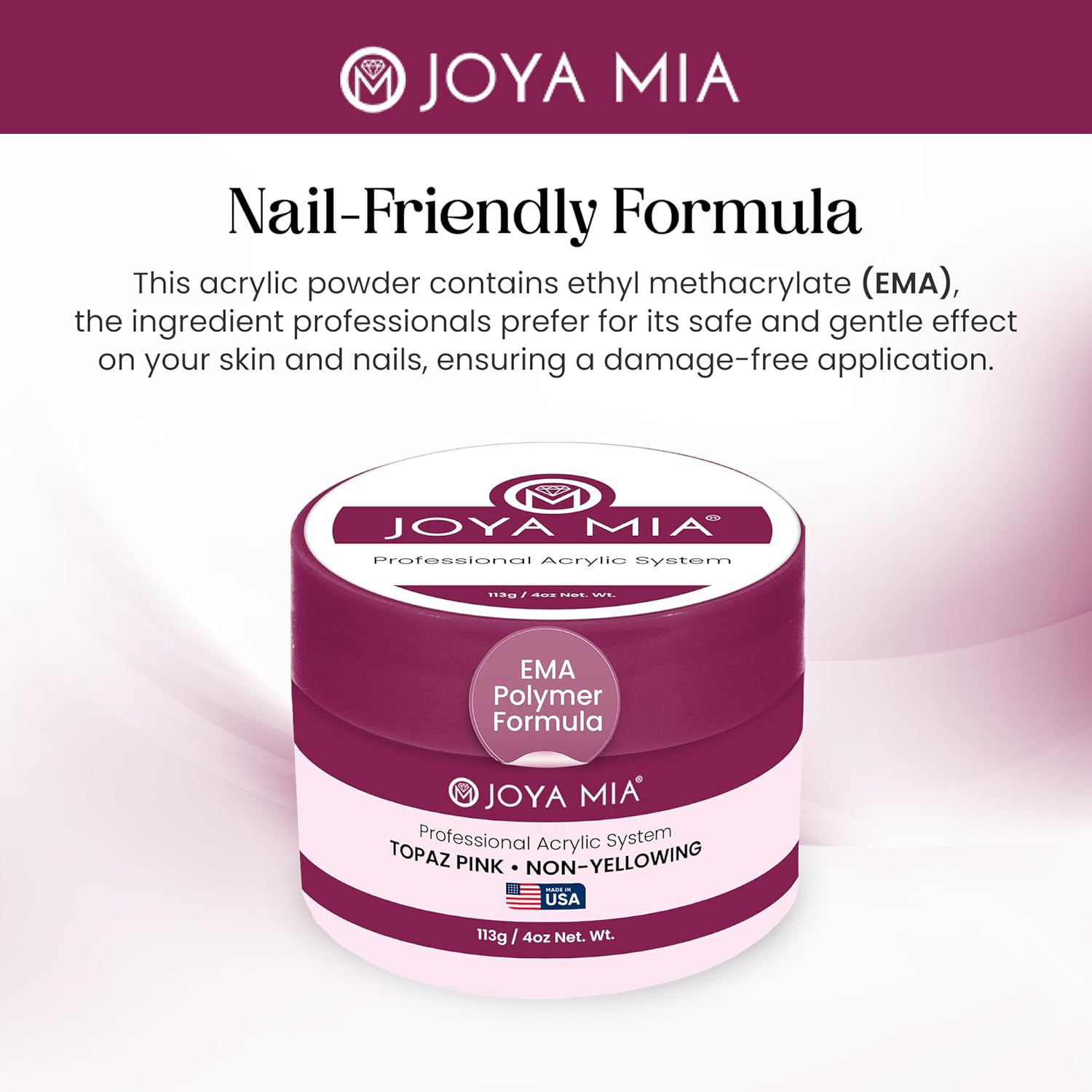Joya Mia Acrylic Powder for Nails, MMA-Free, Super Adhesion Professional Powder for Flawless & Long-Lasting Nail Enhancements, Easy Application, Vibrant & Stunning Colors - Topaz Pink, 4 oz