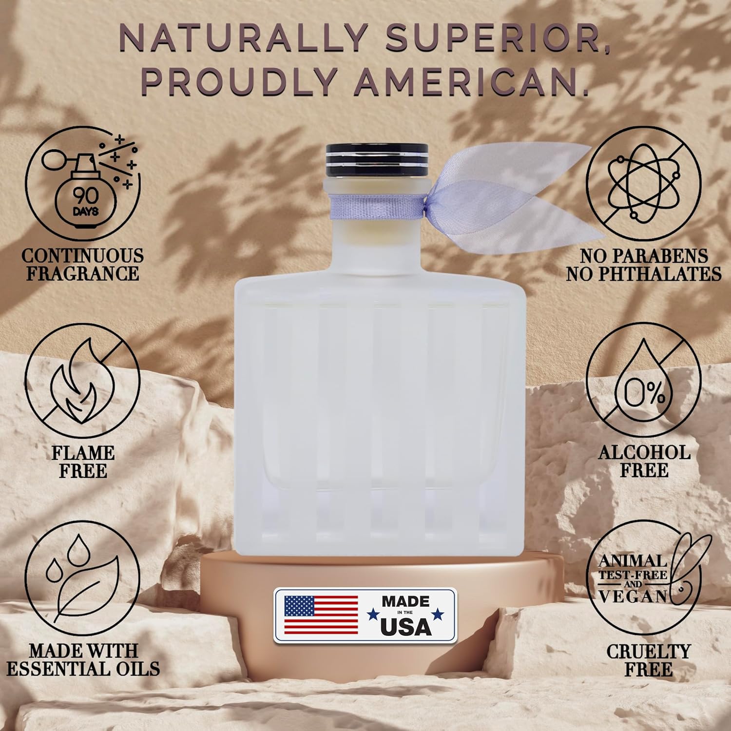 - BOUTIQUE QUALITY, AMERICAN-MADE – Handcrafted in small batches by our family-owned perfumery in the USA, each reed diffuser is made with clean ingredients and long-lasting fragrance. We never use harsh chemicals—just premium, room-filling scent that looks as good as it smells. A safe, stylish way to elevate your space with artisan care.