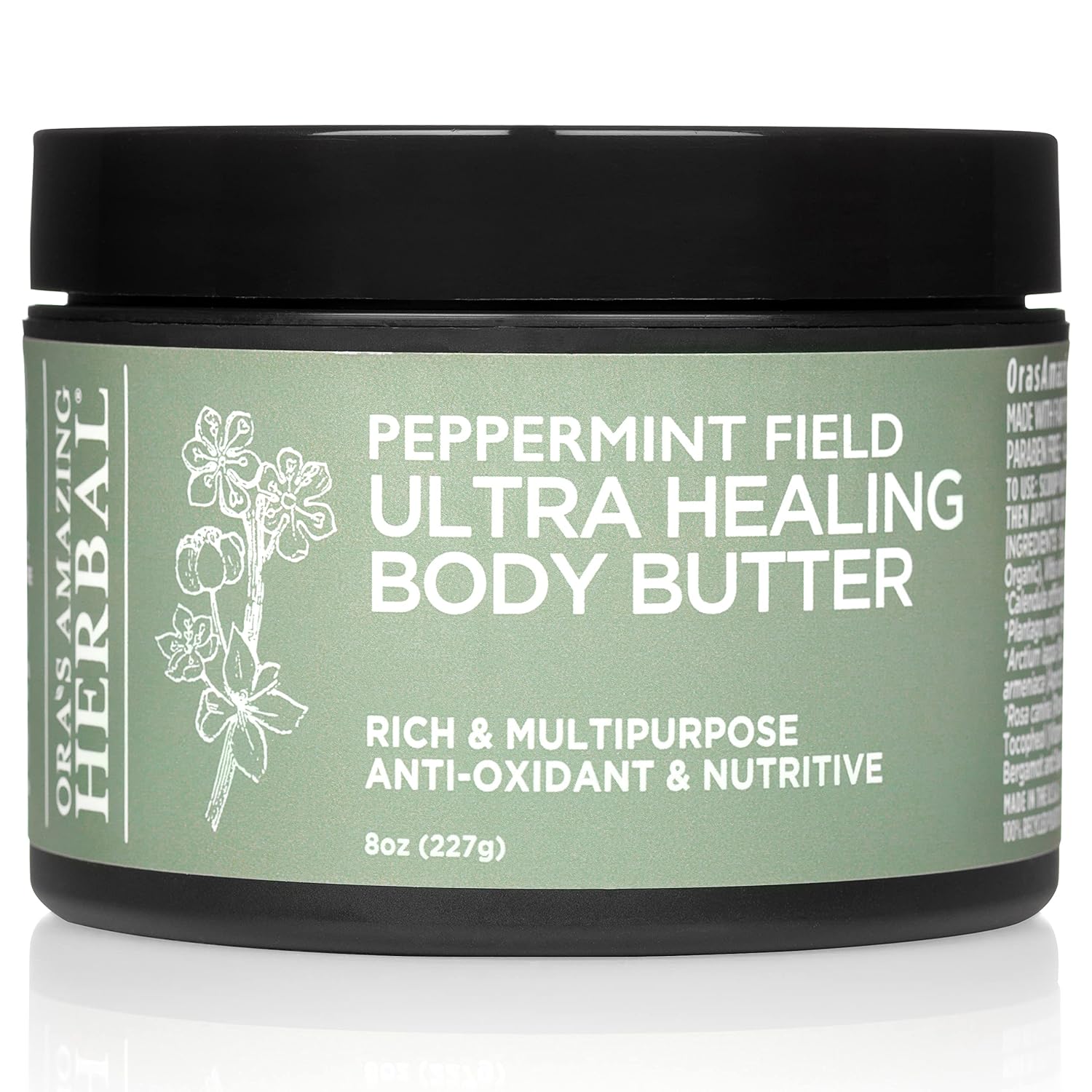 Ultra Healing Body Butter, Intensive Moisturizer For Dry Skin, Spearmint & Bergamot Essential Oil, Ora’s Amazing Herbal, 8 oz, Peppermint Field Scent