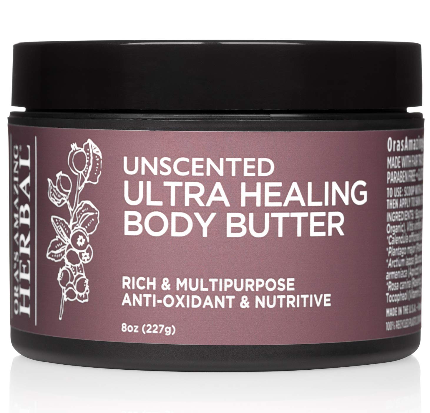 Ora's Amazing Herbal Ultra Healing Body Butter, Intensive Unscented Moisturizer For Dry Skin, Fragrance Free Skin Cream, 8 oz Large