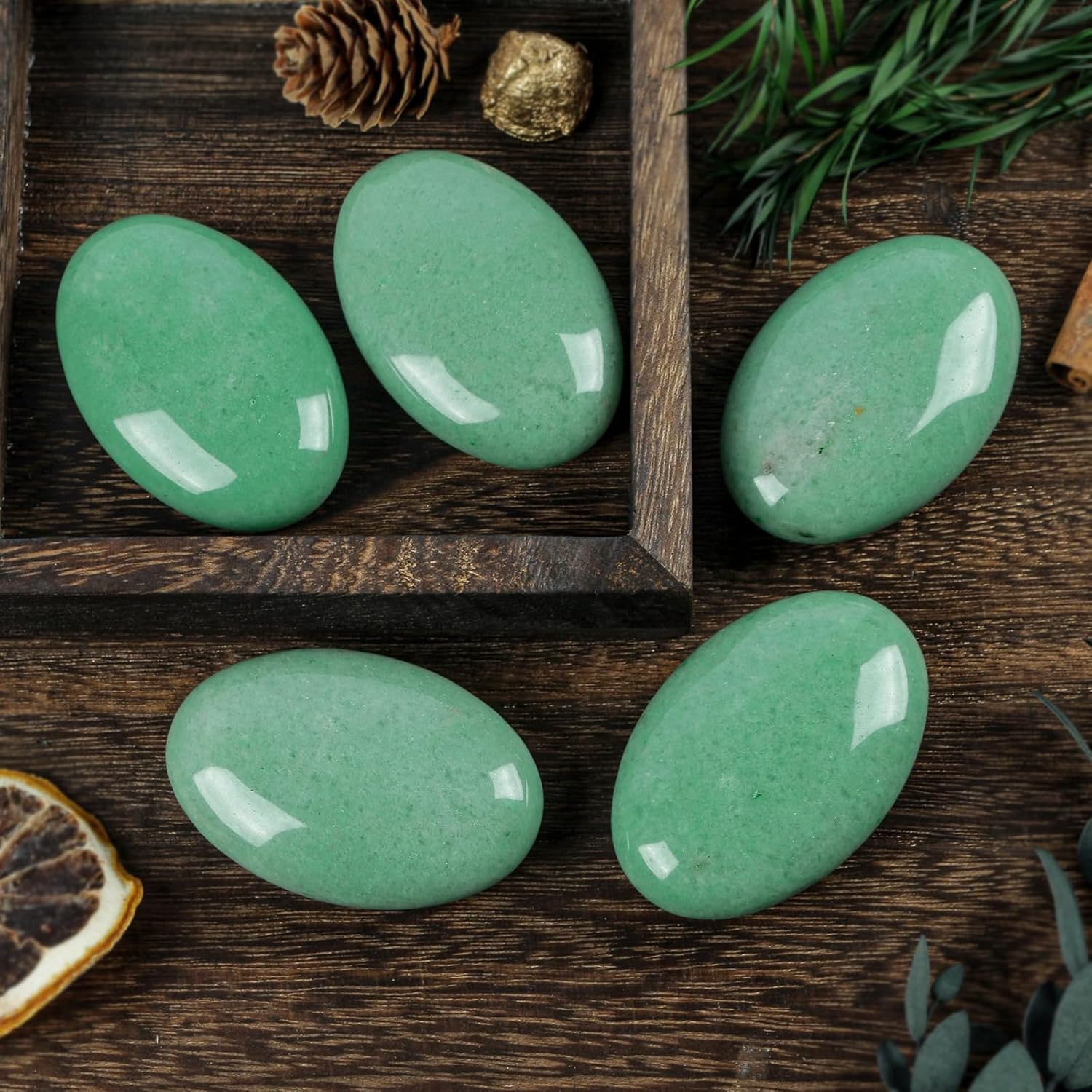 Natural Green Aventurine Oval Polished Worry Stones, Healing Crystal Indoor Fountain Stones Massage Energy Anxiety Relief Items
