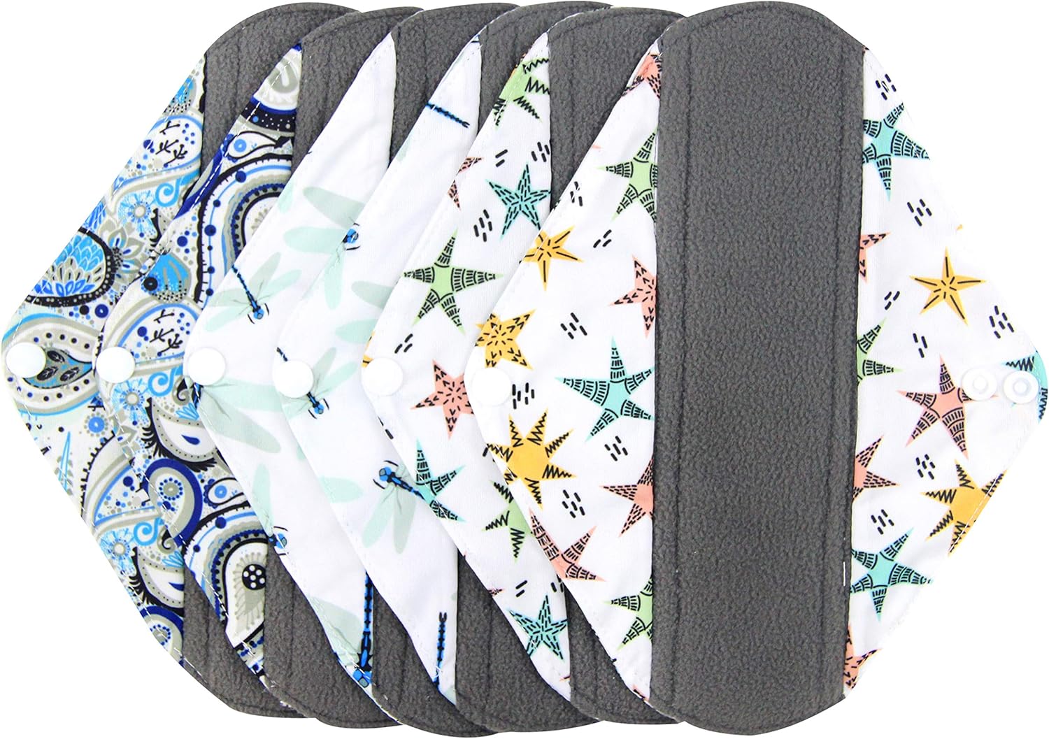 7pcs Set 1 pc Mini Wet Bag +6pcs Absorbent Reusable Sanitary Pads/Washable Cloth Menstrual Pads (L,Elegant)…