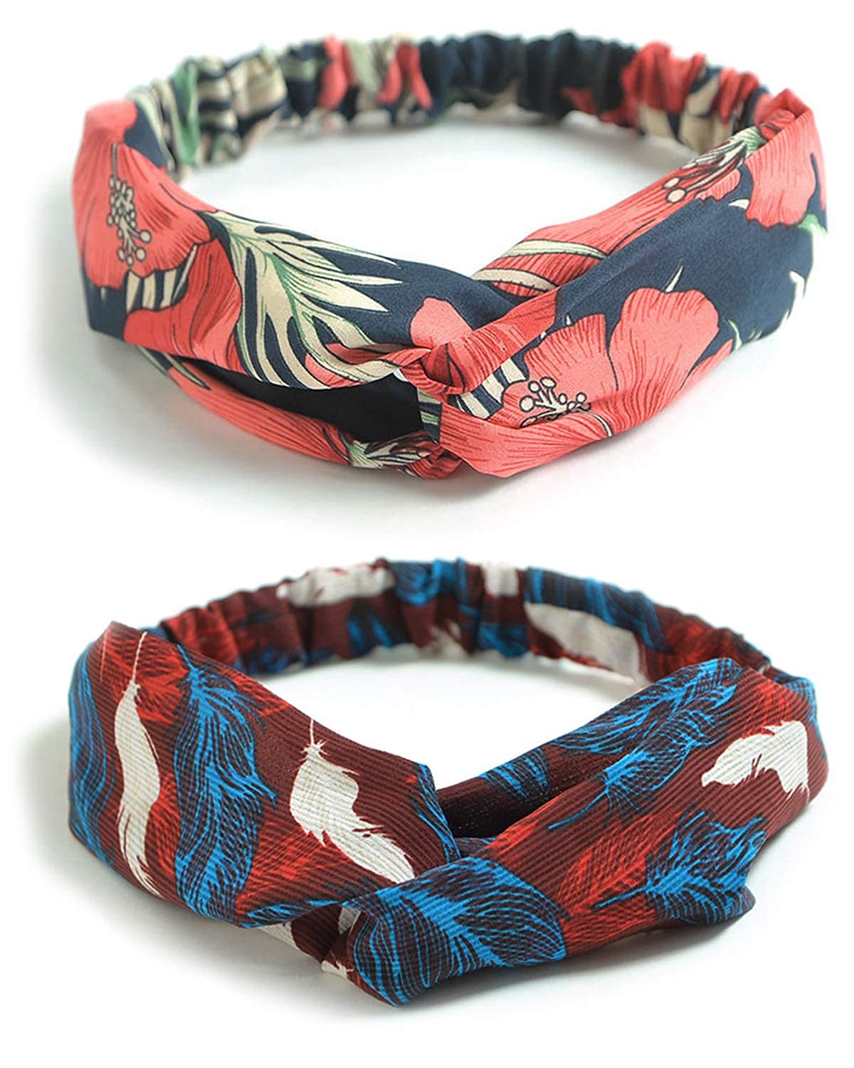 DRESHOW 10 Pack Boho Headbands for Women Vintage Cross Elastic Head Wrap Hair Accessories