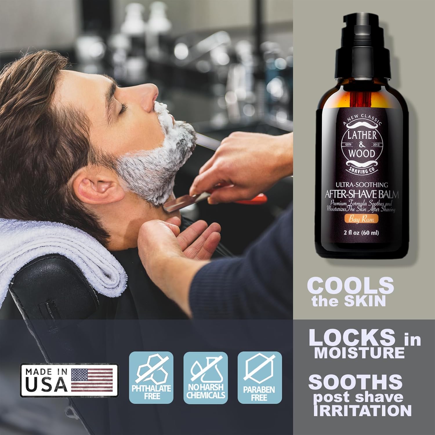 Lather & Wood Aftershave Balm - Aftershave Lotion for Men with a Classic Bay Rum Scent