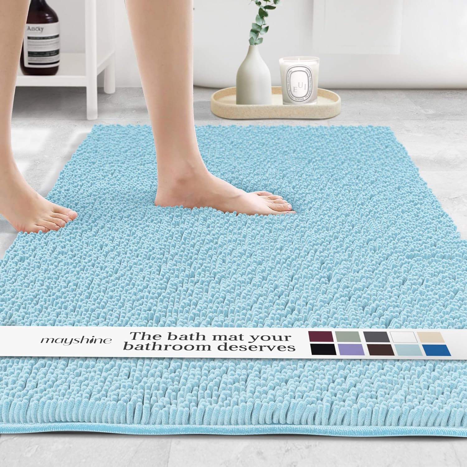 MAYSHINE Plush Shaggy Chenille Bath Mat | Extra Soft, Super Absorbent, Non-Slip Bathroom Rug | Fluffy Microfiber, Area Rug Sets for Bathroom Floor, Kitchen, Living Room | 47"x27" | Spa Blue