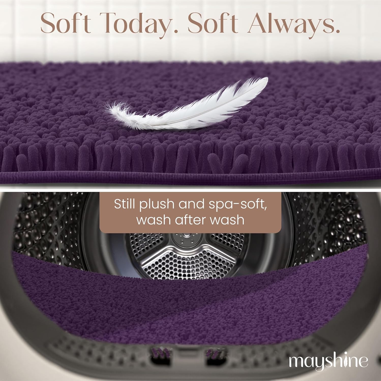 MAYSHINE Plush Shaggy Chenille Bath Mat | Extra Soft, Super Absorbent, Non-Slip Bathroom Rug | Fluffy Microfiber, Area Rug Sets for Bathroom Floor, Kitchen, Living Room | 47"x27" | Plum