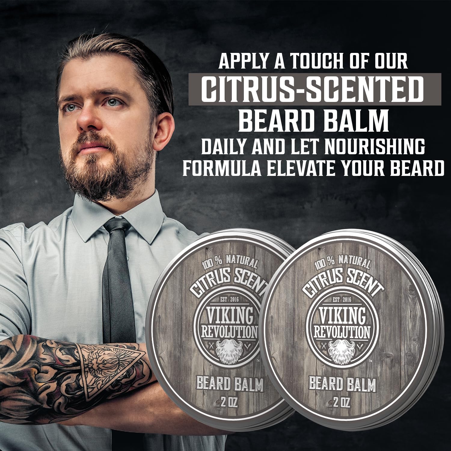 Viking Revolution Citrus Beard Balm - Beard Butter with Argan Oil, Beard Softener for Men with Jojoba Oil - Beard Moisturizer for Men with Beeswax - Beard Wax for Men with Mango Butter (2oz, 2 Pack)