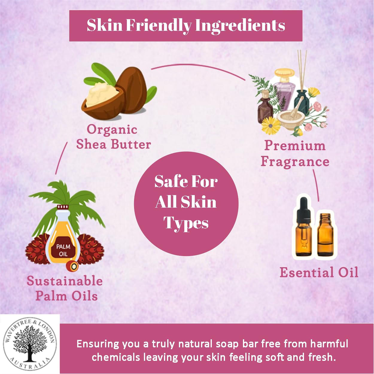 Wavertree & London Sweet Pea & Jasmine Scented Natural Soap (8 Bars), 7oz Moisturizing French Triple Milled Soap Bars enriched with shea butter - Pure Plant Oil Bath & Body Bars for All Skin Types