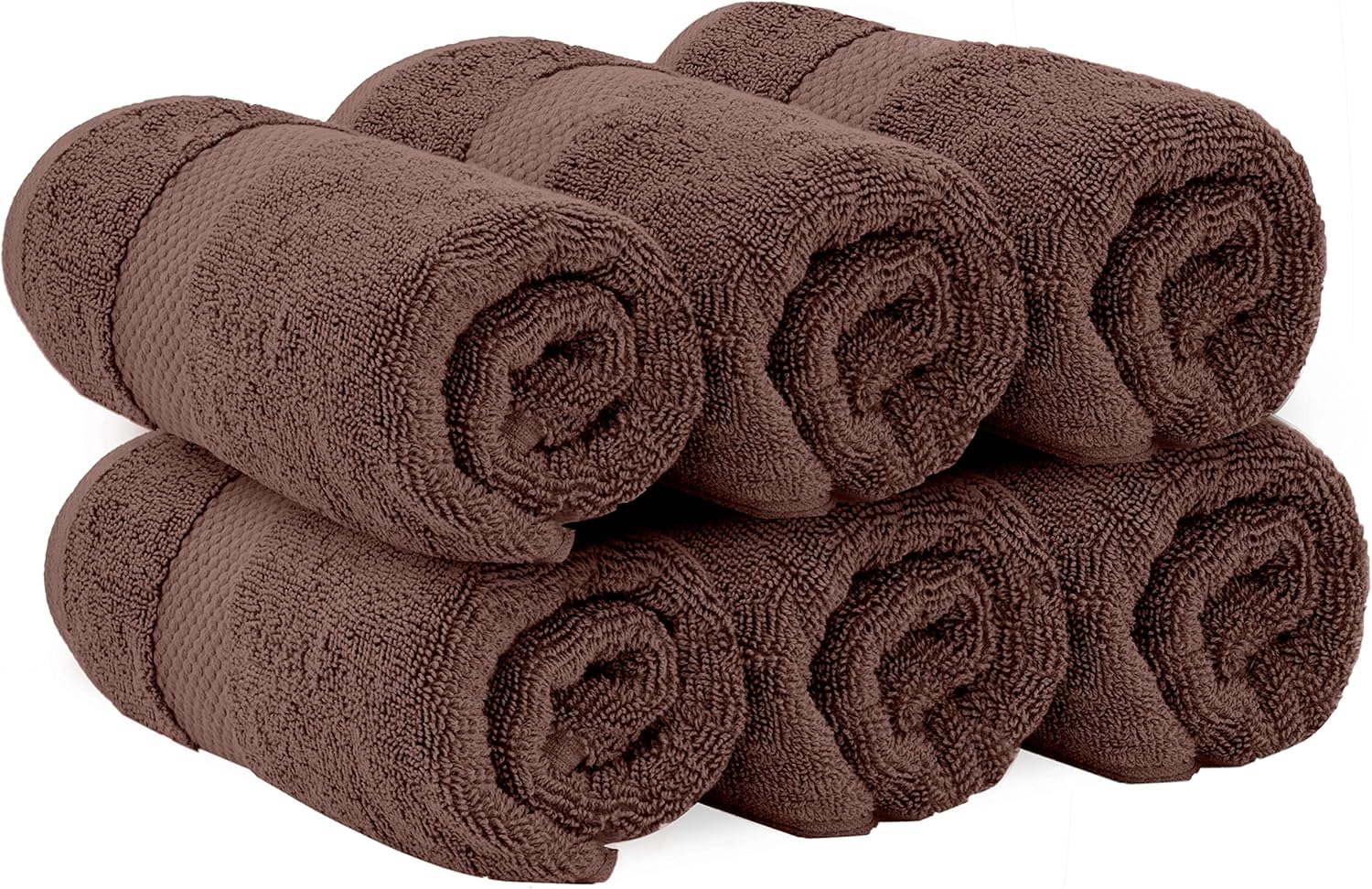 White Classic Luxury Brown Hand Towels - Soft 100% Turkish Cotton | Highly Absorbent Hotel spa Bathroom Towel Collection | 16x30 Inch | Set of 6