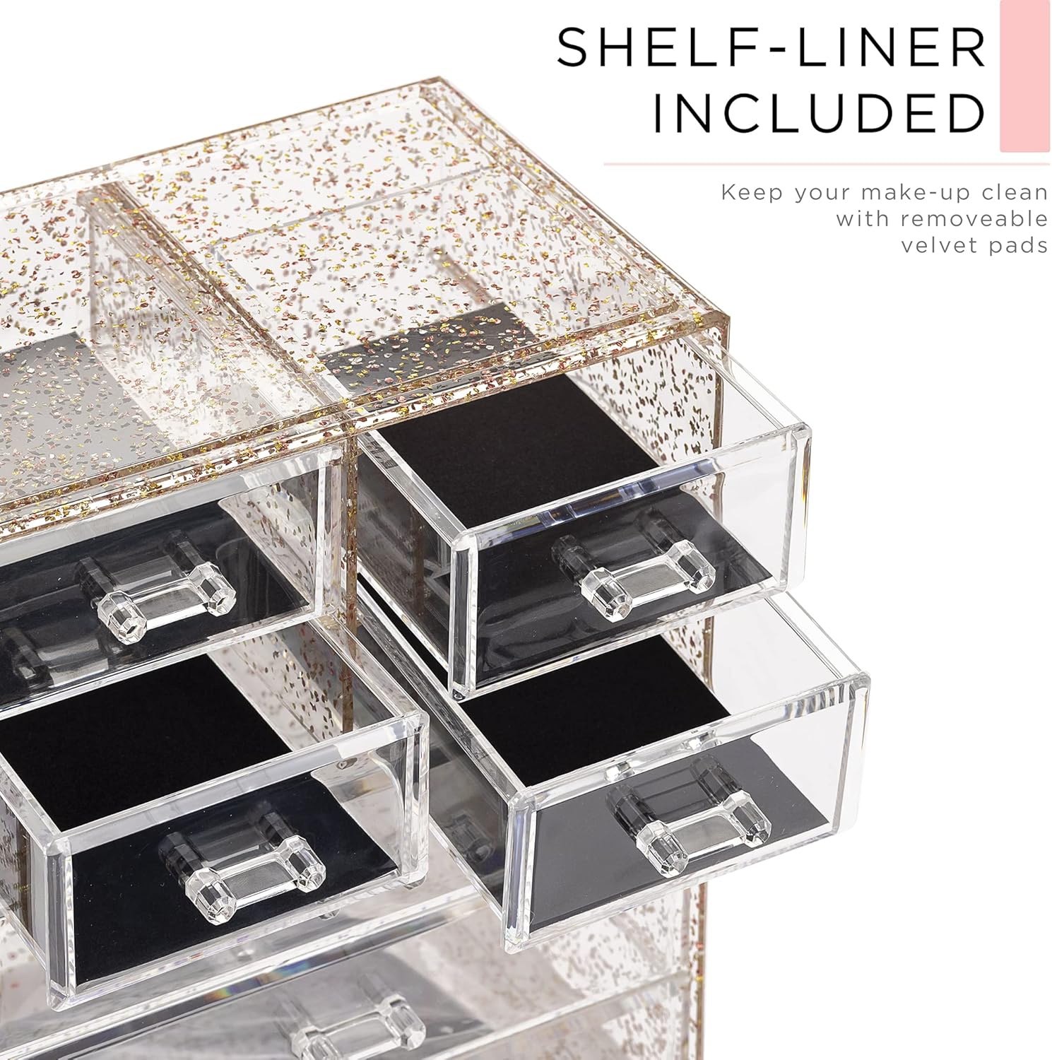 Sorbus Clear Cosmetic Makeup Organizer - Make Up & Jewelry Storage, Case & Display - Spacious Design - Great Holder for Dresser, Bathroom, Vanity & Countertop (3 Large, 4 Small Drawers) [Glitter]
