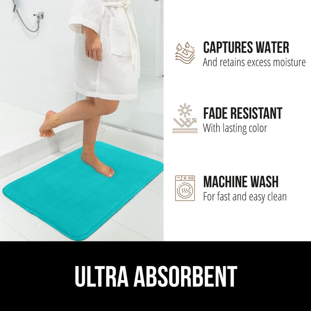 GORILLA GRIP Memory Foam Bath Rugs, Soft Absorbent Velvet Bathroom Mats, Durable Dots on Underside, Machine Washable Bathmat, Carpet Rug Room Decor for Shower Floor, 30x20 Mat, Turquoise