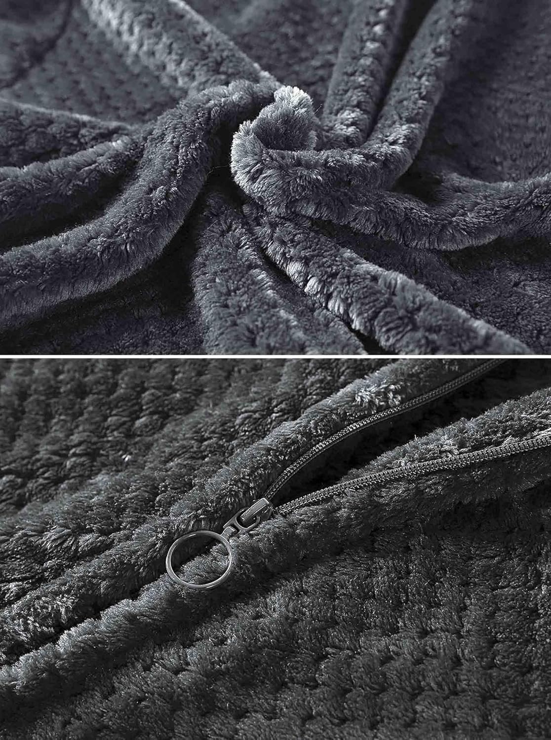 Artfasion Womens Fleece Robe Plush Long Zip Front Bathrobe with Pockets Warm Soft Zippered Bathrobes for Women