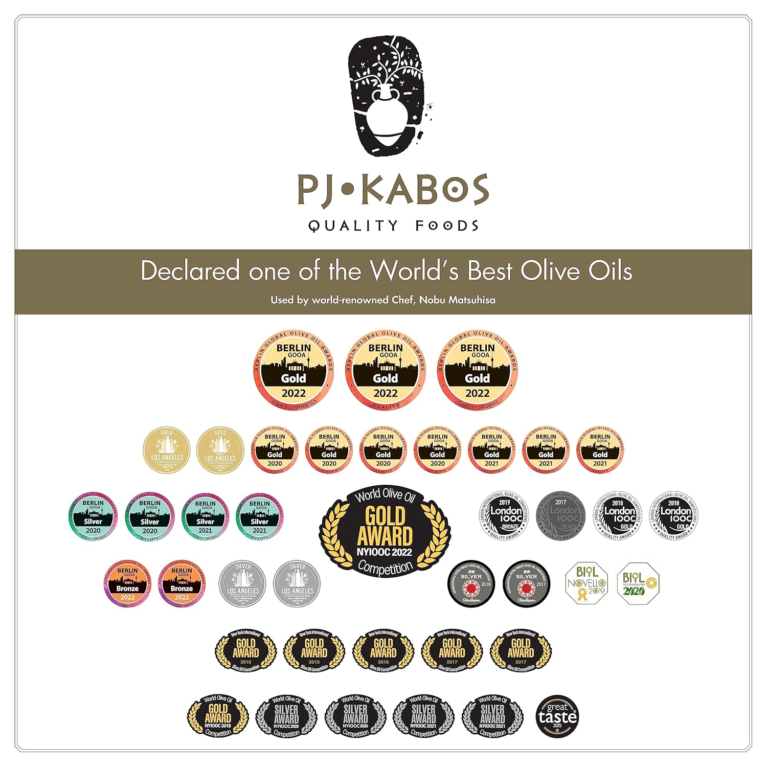 P.J. KABOS 2024/25 Harvest, High Phenolic (450+mg/kg), Premium Greek Extra Virgin Olive Oil, Kosher, Greece, Cold Extracted, 3 x 16.9 oz Tin, Koroneiki, "Family Reserve - Medium"