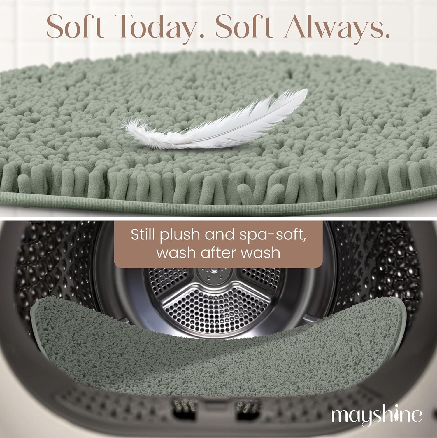 MAYSHINE Round Area Rug Set for Bathroom | Soft Plush Chenille Bath Mat, Water Absorbent Non-Slip Bathroom Rug | Washable Shag Carpet for Shower, Bedroom, or Home Décor | 36"x36" (Round) | Sage Green