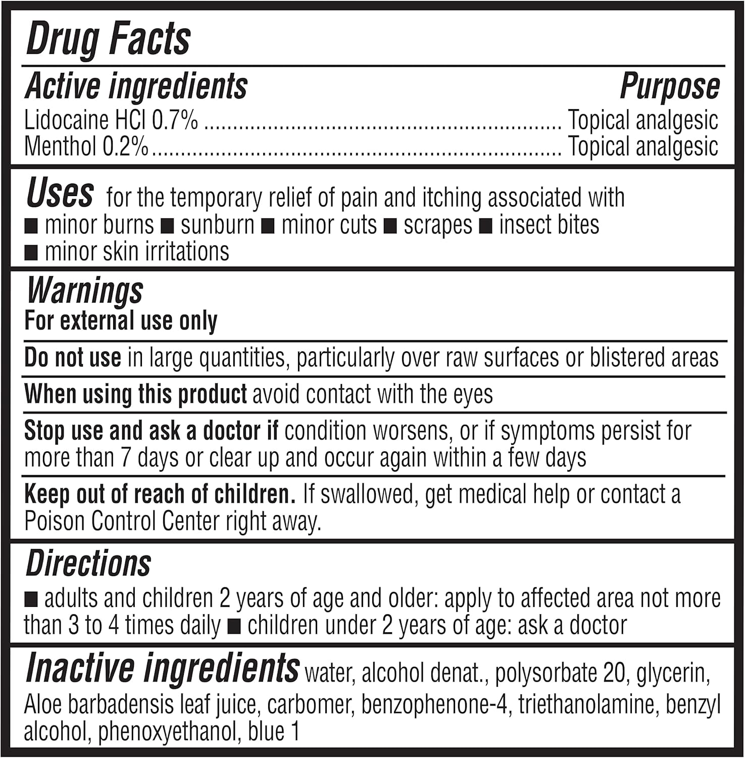 - Pain relieving gel with lidocaine and menthol Cools and soothes skin
