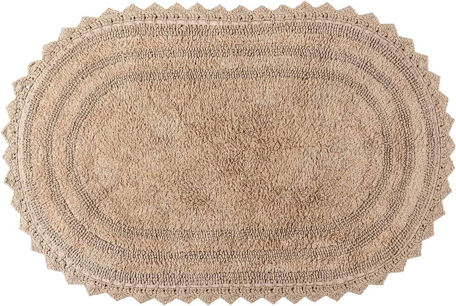 RAJRANG Bath Rug for Bathroom Kitchen and Spa with Crochet Pattern Cotton Luxury Absorbent Soft Reversible Boho Bath Mat Sand Oval 24x17 Inches