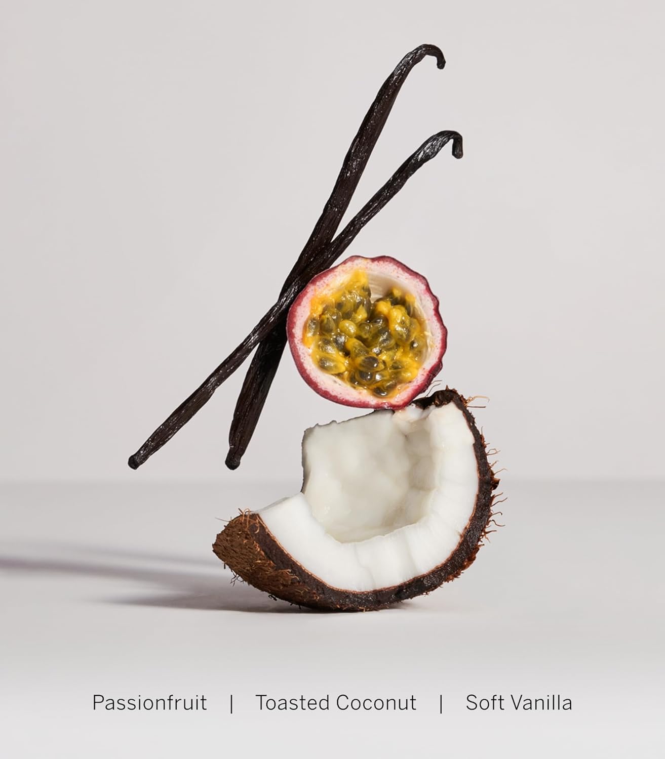 - A scent blend to inspire a cozy, Sunday state-of-mind. Comforting. Addicting. Warm. With notes of Soft Vanilla, Toasted Coconut and Passionfruit.