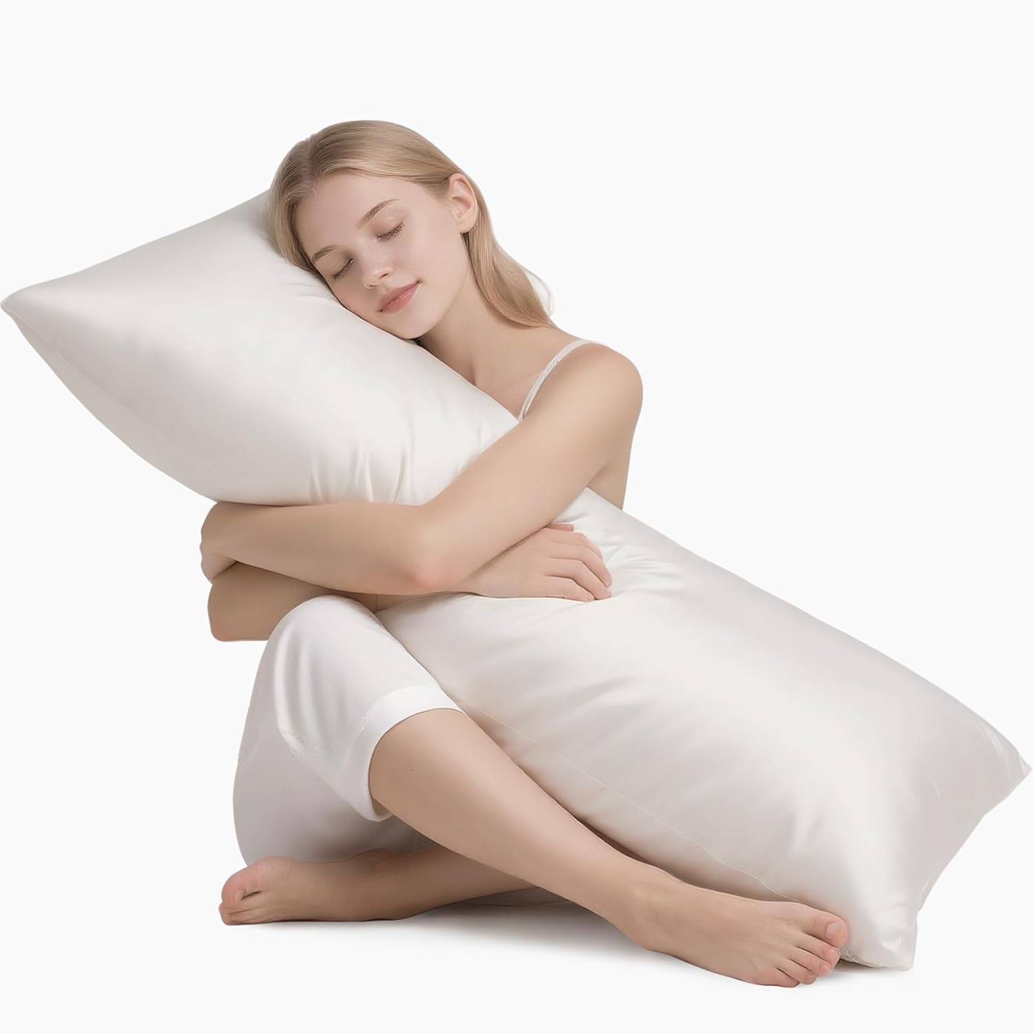 MR&HM Satin Body Pillow Cover, Soft and Breathable Body Pillow Case with Envelope Closure, Cooling and Silky Long Pillowcase for Hair and Skin,Grey (20x54, Ivory)