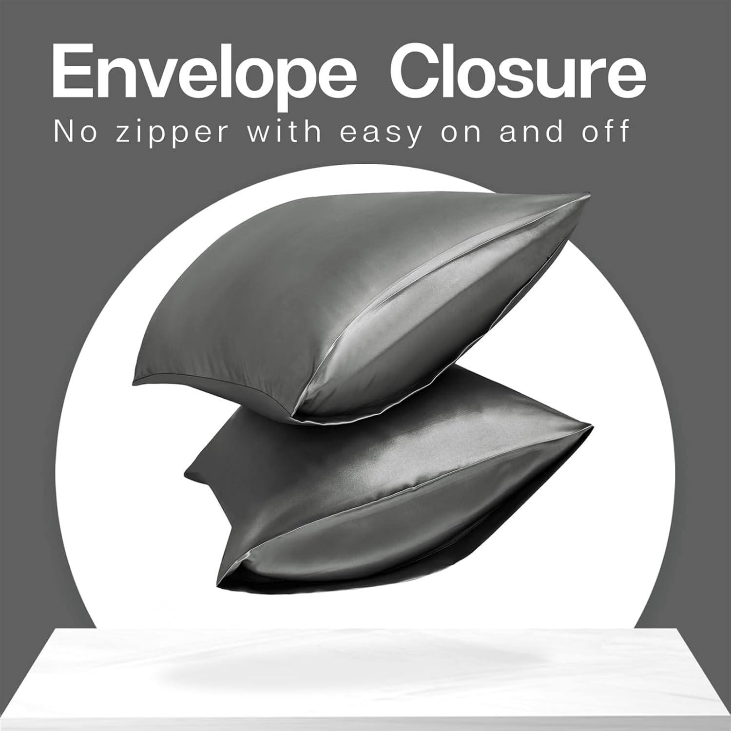 MR&HM Satin Pillowcase for Hair and Skin, Silk Satin Pillowcase 2 Pack, King Size Pillow Cases Set of 2, Silky Pillow Cover with Envelope Closure (20x40, Dark Grey)