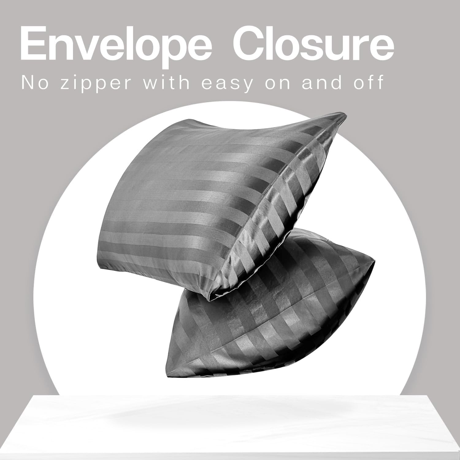 MR&HM Satin Pillowcase for Hair and Skin, Silk Satin Pillowcase 2 Pack, Queen Size Pillow Cases Set of 2, Silky Pillow Cover with Envelope Closure (20x30, Dark Grey Striped)