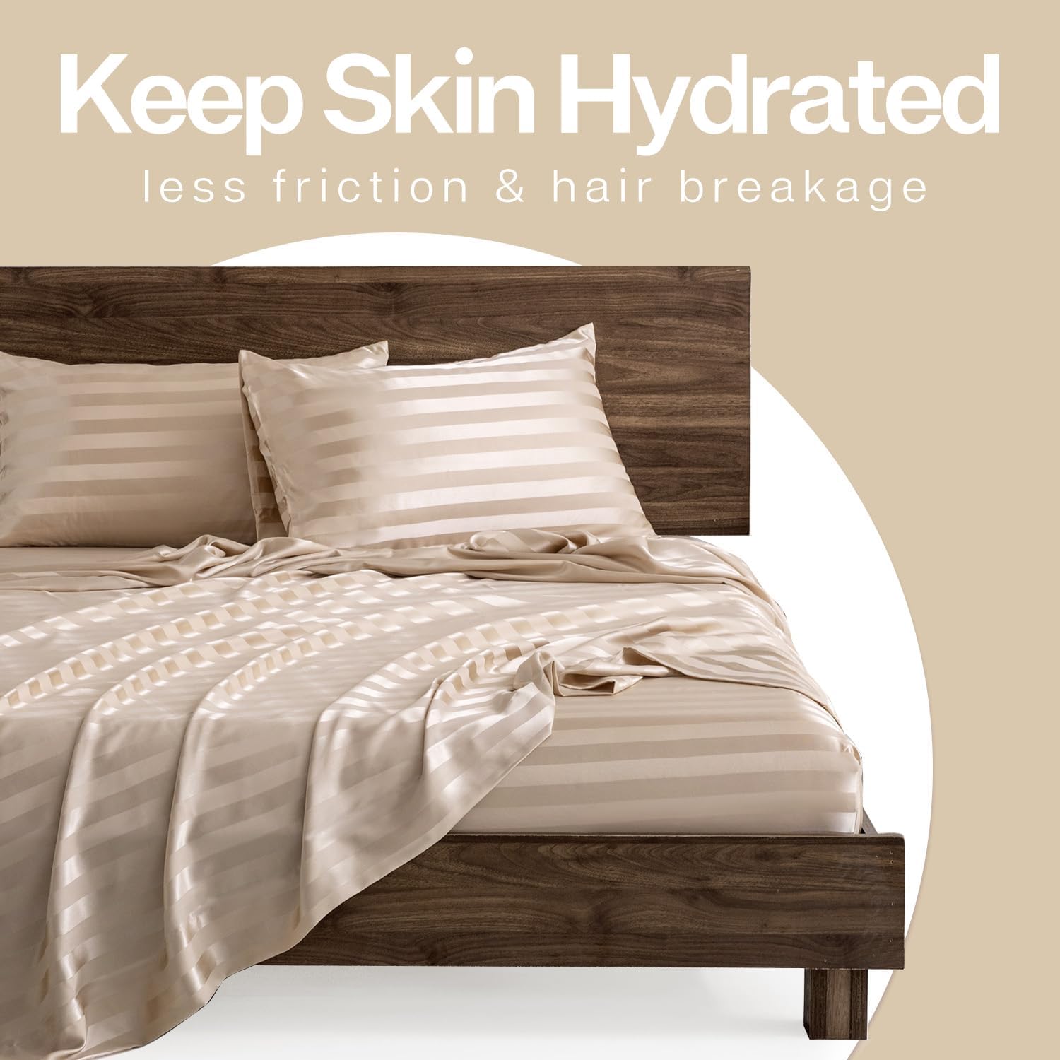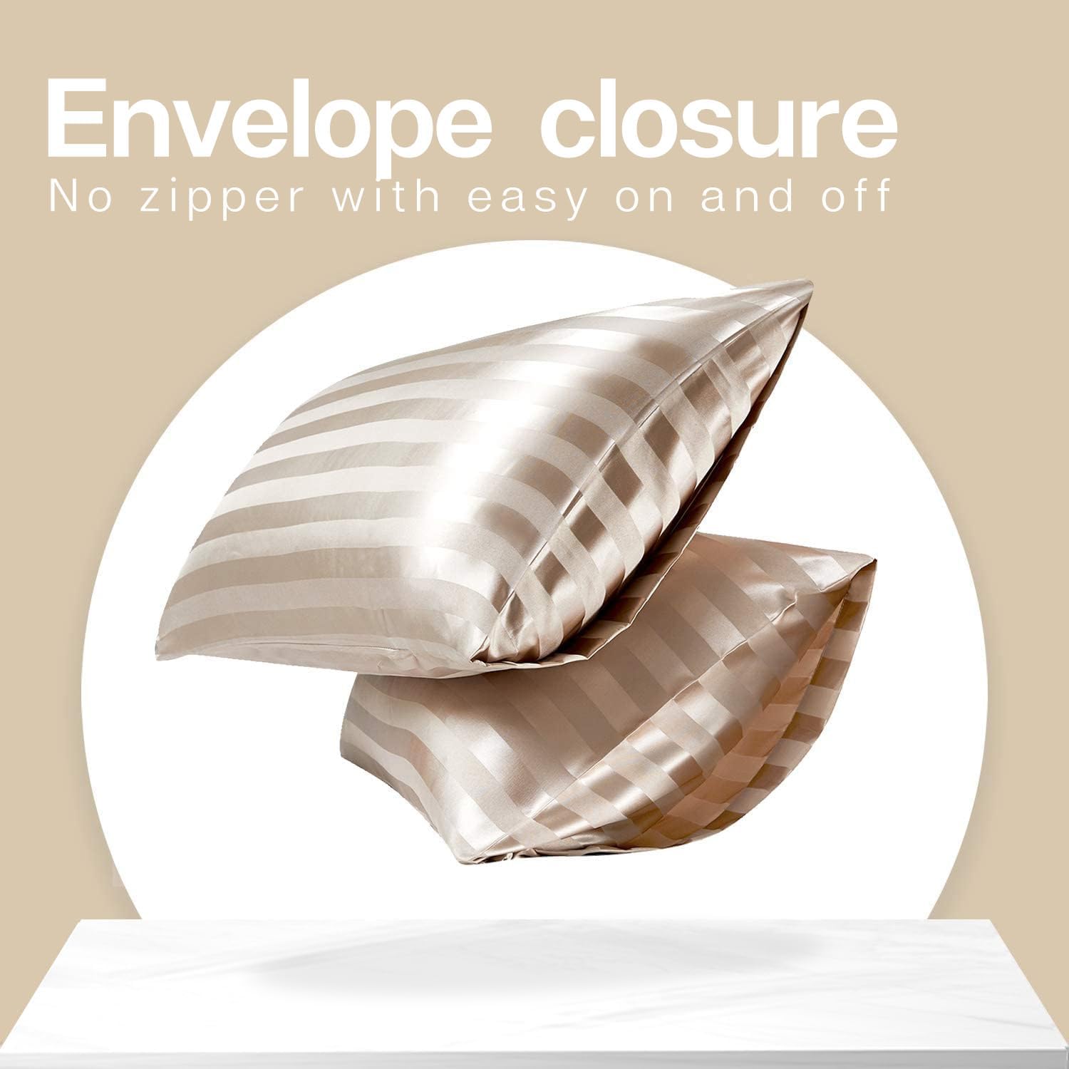 MR&HM Satin Pillowcase for Hair and Skin, Silk Satin Pillowcase 2 Pack, King Size Pillow Cases Set of 2, Silky Pillow Cover with Envelope Closure (20x40, Champagne Striped)
