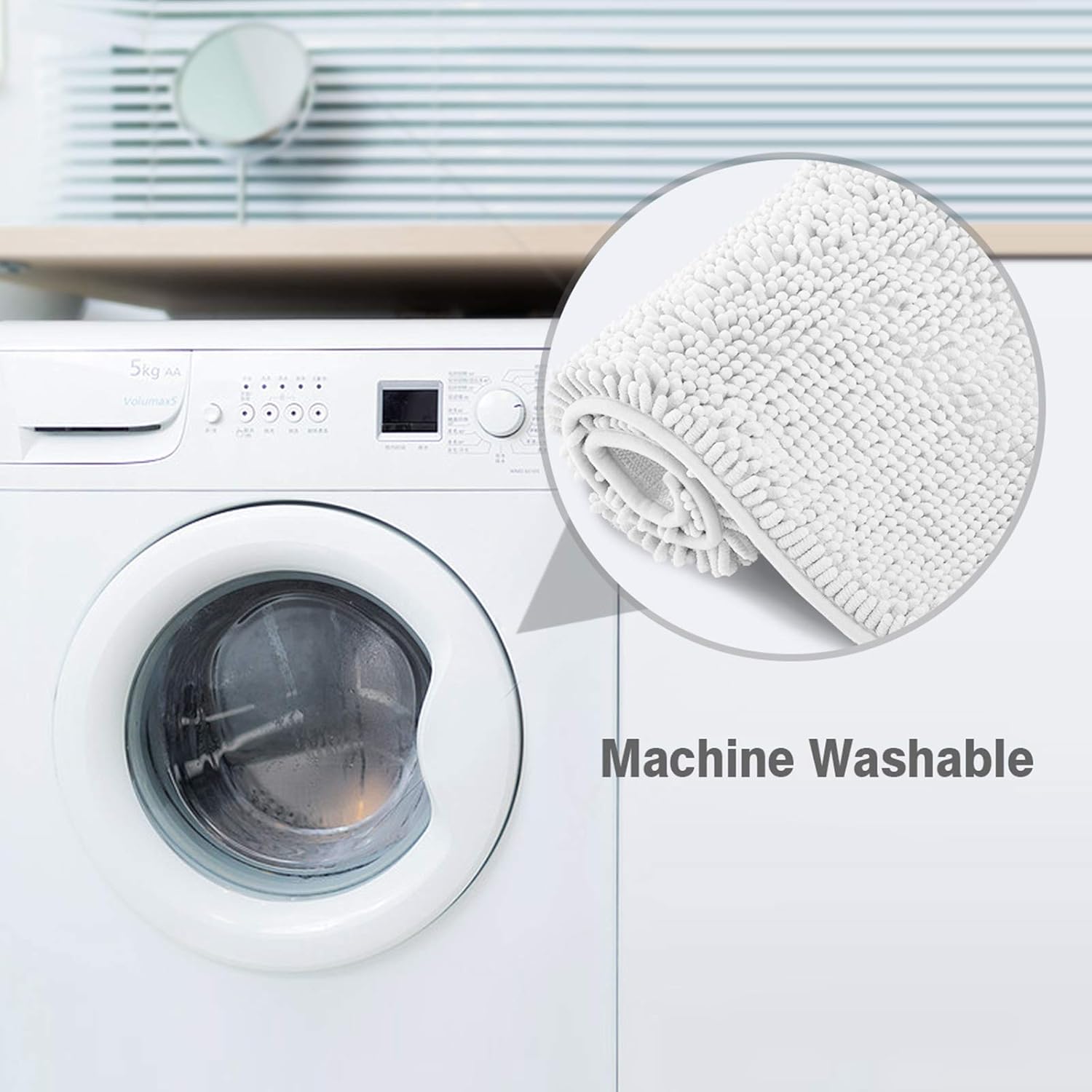 - Thick chenille microfiber bathroom rug absorbs water fast to keep floors dry. Perfect small bath rug for shower sides, vanity areas, and puddle-prone spots in the bathroom.
