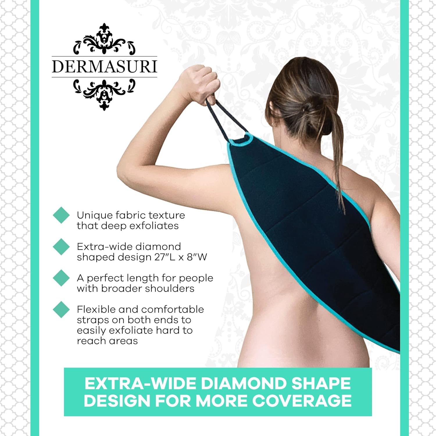 Dermasuri Deep Exfoliating Back Scrubber -Bath & Shower Back Scrub - Body Exfoliator Scraper Tool - Deep Exfoliation Body Cleaner for Shower, 27" Long, 8" Wide