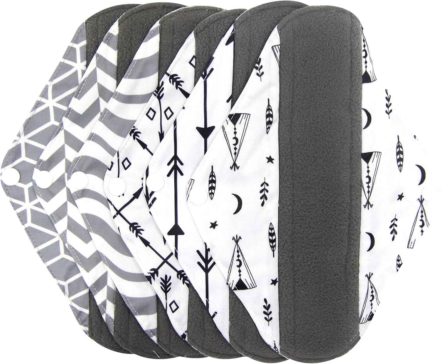 7pcs Set 1 pc Mini Wet Bag +6pcs Absorbent Reusable Sanitary Pads/Washable Cloth Menstrual Pads (L,Grey)