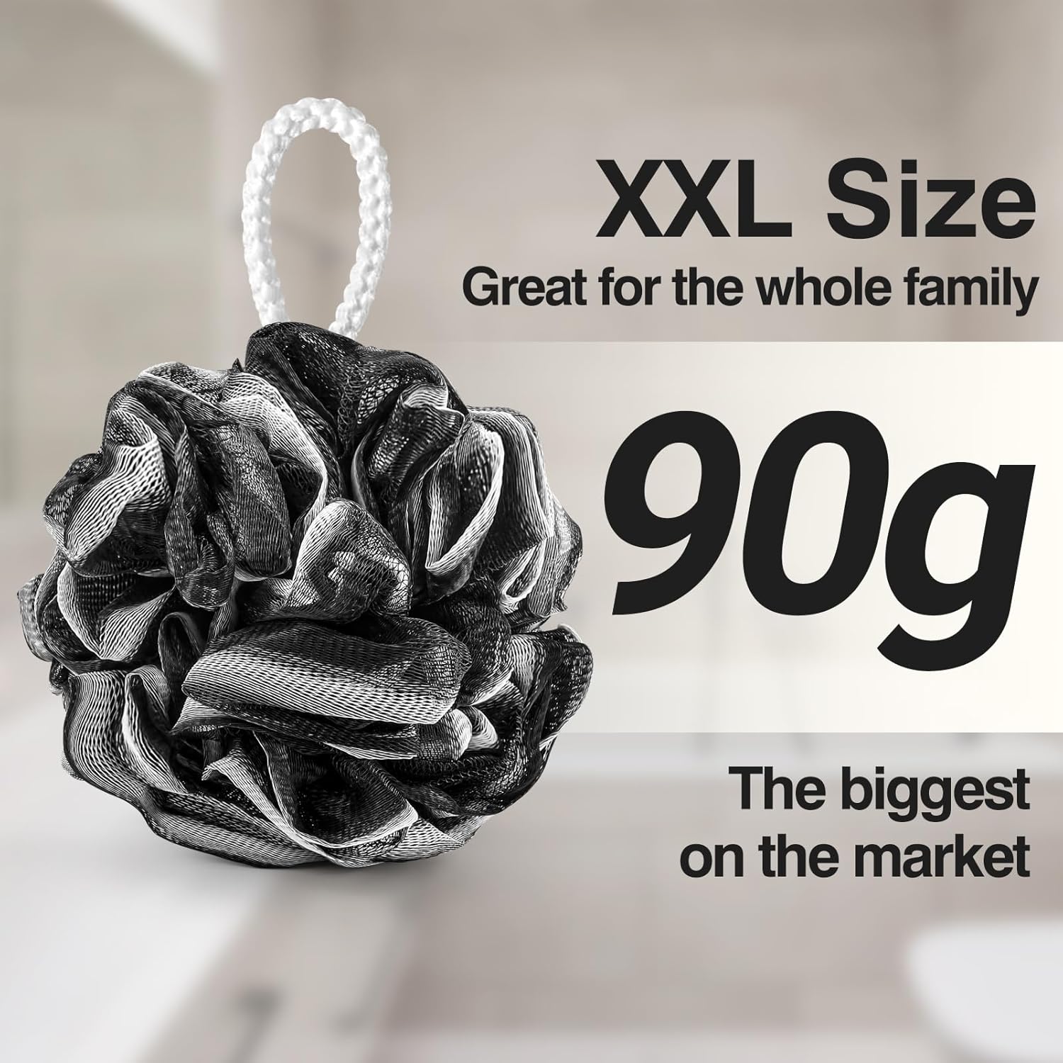 - XXL 90g size provides great exfoliation: Our bath sponges were designed to actively scrub your skin while still being comfortable to use. This will help you get rid of dead skin and give it a glowing and healthy look.