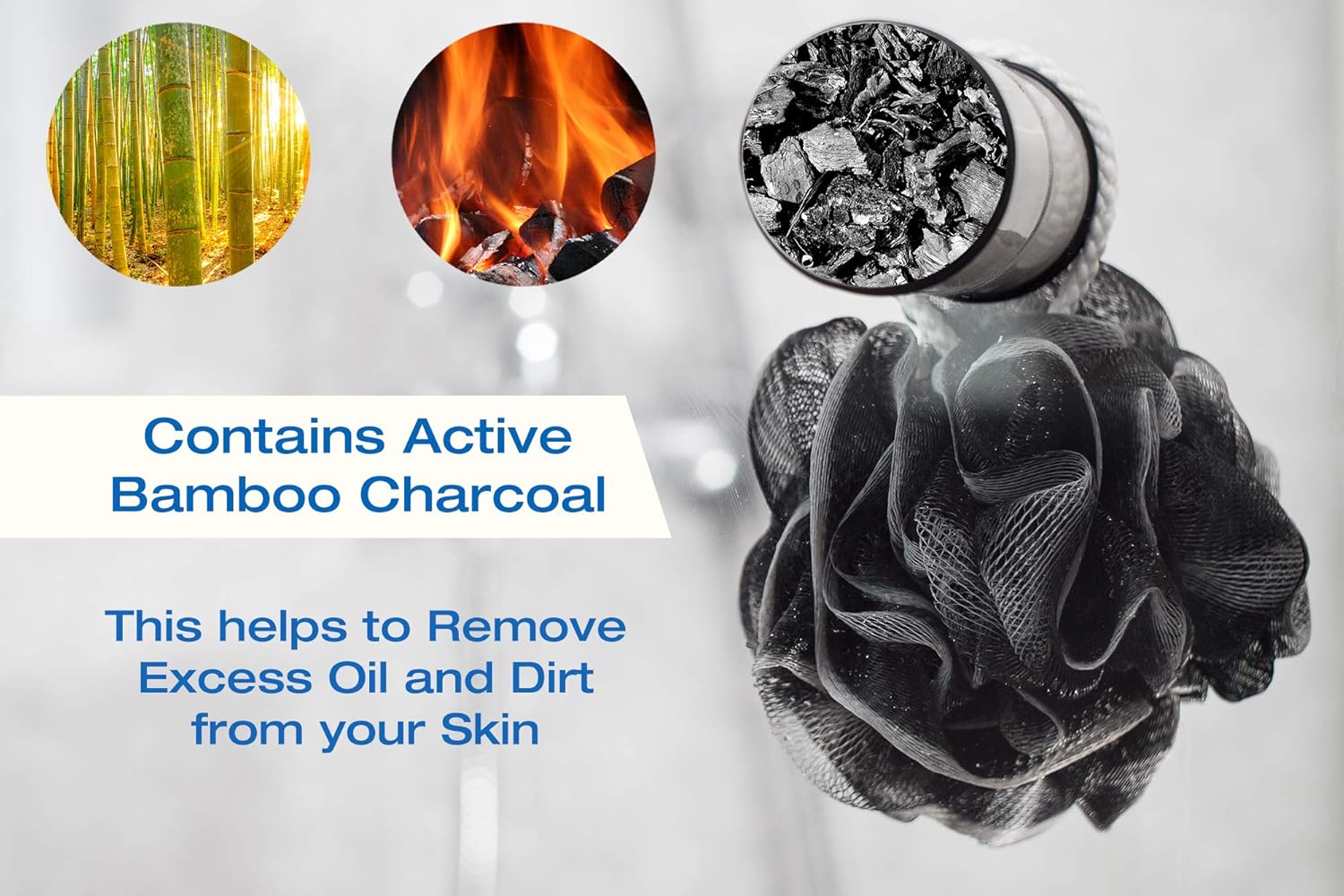 XXL 90g Charcoal Shower Loofah 3 Pack by Tilcare - Perfect Bath Sponge for Exfoliating for Men & Women - Body Scrubber Brush for Cleansing and Smooth Skin - Scrubbies That Remove Excess Oil and Dirt