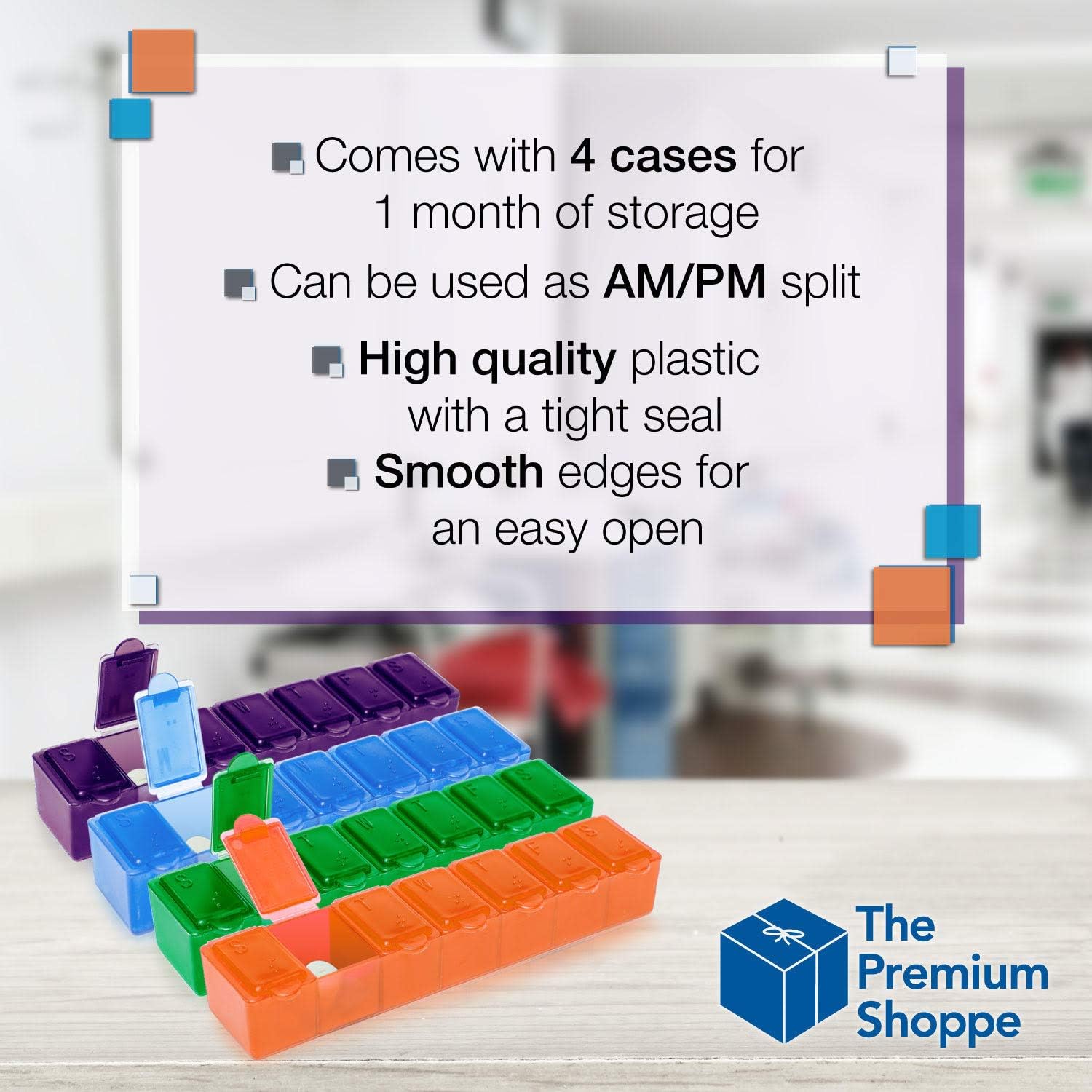USA Merchant - 7 Day Pill Box Small with Snap Close Lids - Weekly Pill Organizer 4 Times a Day or 28 Day Dispenser - Comes with 4 Separate 7 Day Pill Containers for Vitamins, Supplements, and Medicine