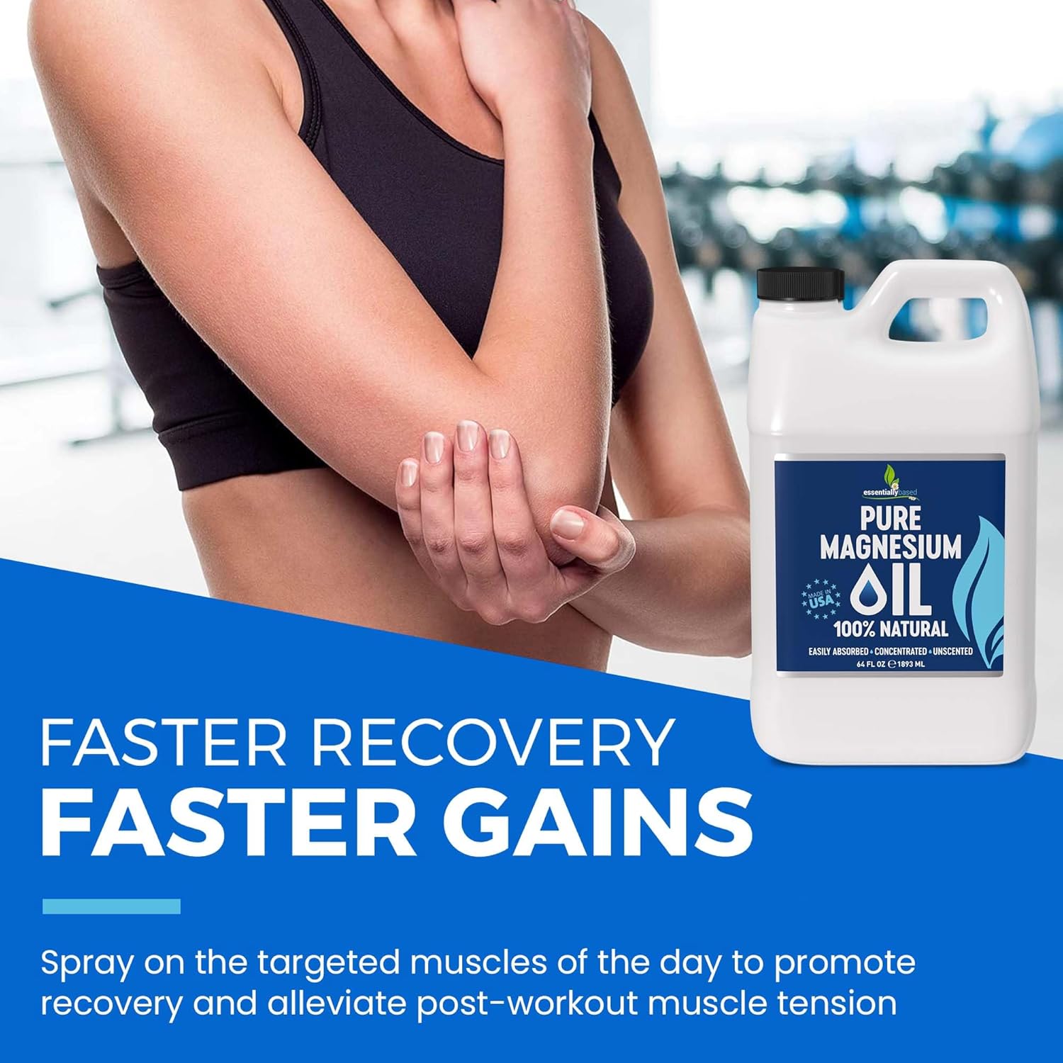 Pure Magnesium Oil Spray 64oz - Topical Magnesium Spray for Sleep Extra Strength - Less Sting - Less Itch - 100% Natural and Organic Oil - Made in USA