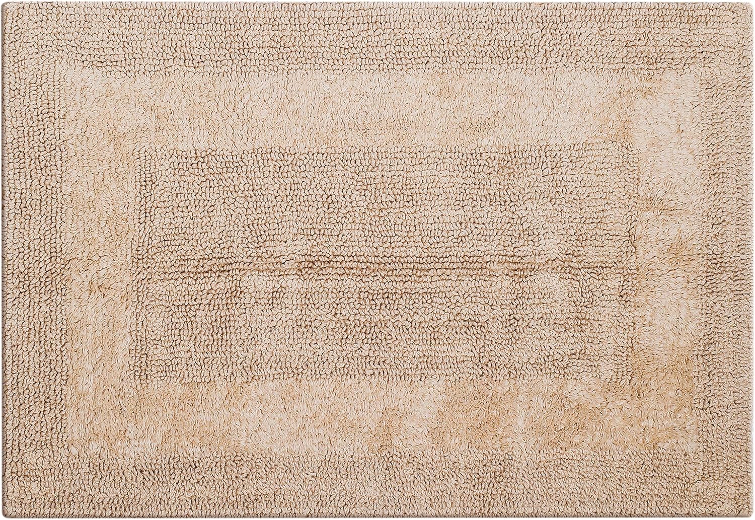 Bathroom Rugs Set 2 Piece Linen Beige Cotton Tufted Reversible Washable Bath Mats for Bathroom Floor| Quick Dry Bathroom Mat for Tub Spa Shower Toilet| Entry Way Door Mats|21x32 & 17x24 Inches