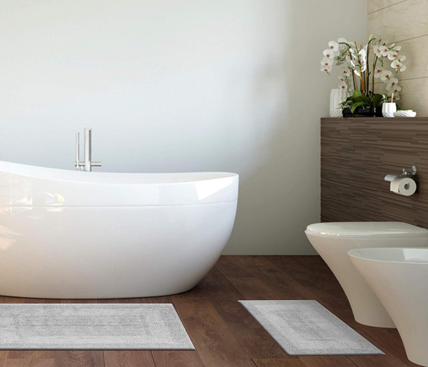 Bathroom Rugs Set 2 Piece Light Grey Cotton Tufted Reversible Washable Bath Mats for Bathroom Floor| Quick Dry Bathroom Mat for Tub Spa Shower Toilet| Entry Way Door Mats|21x32 & 17x24 Inches