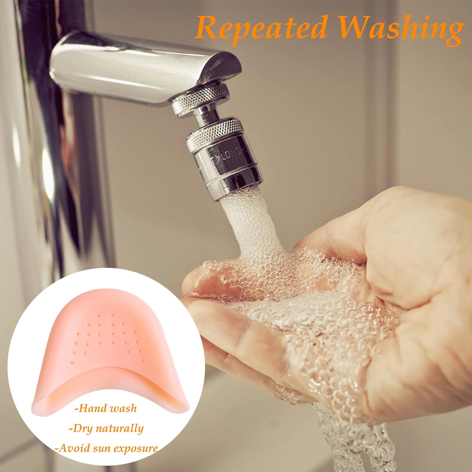 - Material: Please note that the two colors have different materials and textures! Thin-Pink Toe Cover: Cotton Fabric outside provide anti-slip and gel inside made gel toe pouch a comfortabel cushion. The Peach Color Toe Pad is made of silica gel with no cotton cover. Soft gel texture in direct contact with the skin, great extensibility, fits your toes better, and provides better protection for your toes. With breathable hole design, it has good breathing during walking, and keeps dry.