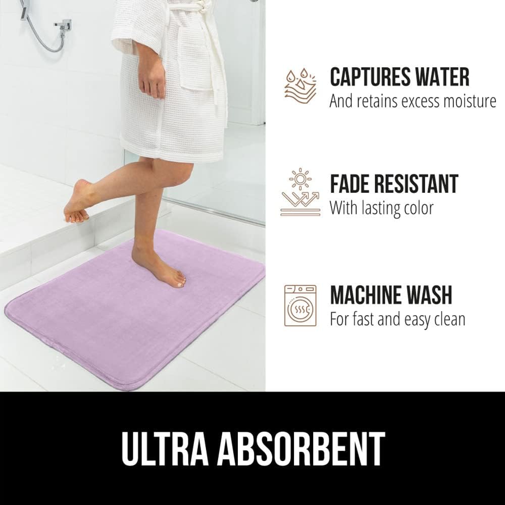 GORILLA GRIP Memory Foam Bath Mat, Soft Absorbent Velvet Bathroom Mats, Durable Dots on Underside, Machine Washable Bathmat, Carpet Rug Room Decor for Shower Tub Floor RV, 30x20 Rugs, Purple