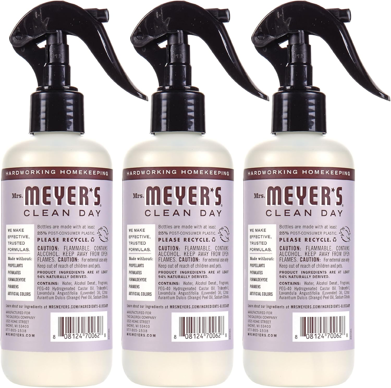 - Mrs. Meyer’s Clean Day Lavender air freshener spray is made with essential oils and other thoughtfully chosen ingredients, and gives your home instant freshening between cleaning days