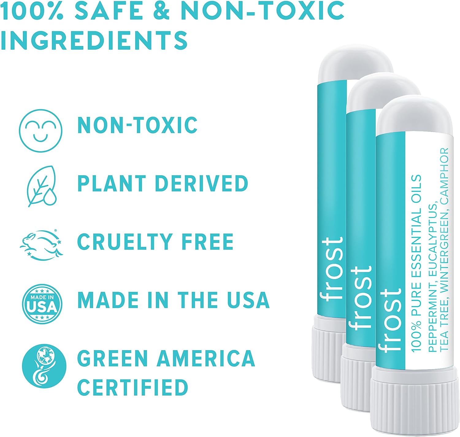 - Made in America - Using an all-natural blend of organic essential oils, we loving make all of our inhalers in the United States using only pure steam-distilled essential oils of the highest quality. Disclaimer: Inhale gently. Frost is made with 100% pure essential oils. They're naturally very strong and can cause discomfort if inhaled aggressively.