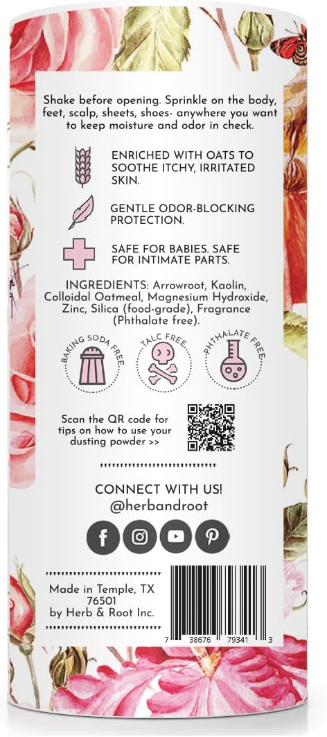 - Herb & Root's dusting powder for women provides a delicate rose fragrance, ensuring you feel refreshed and confident all day long.